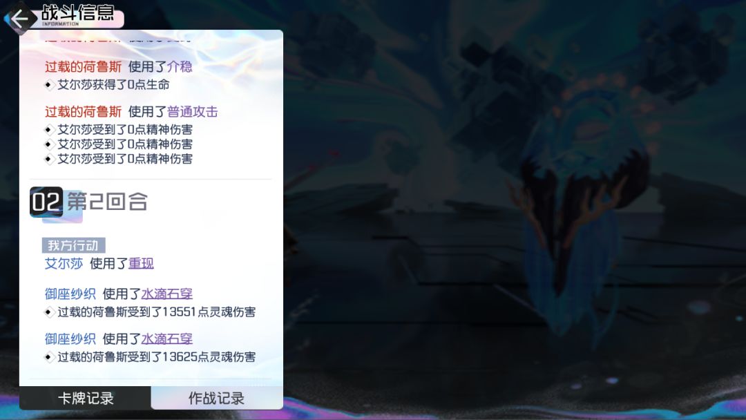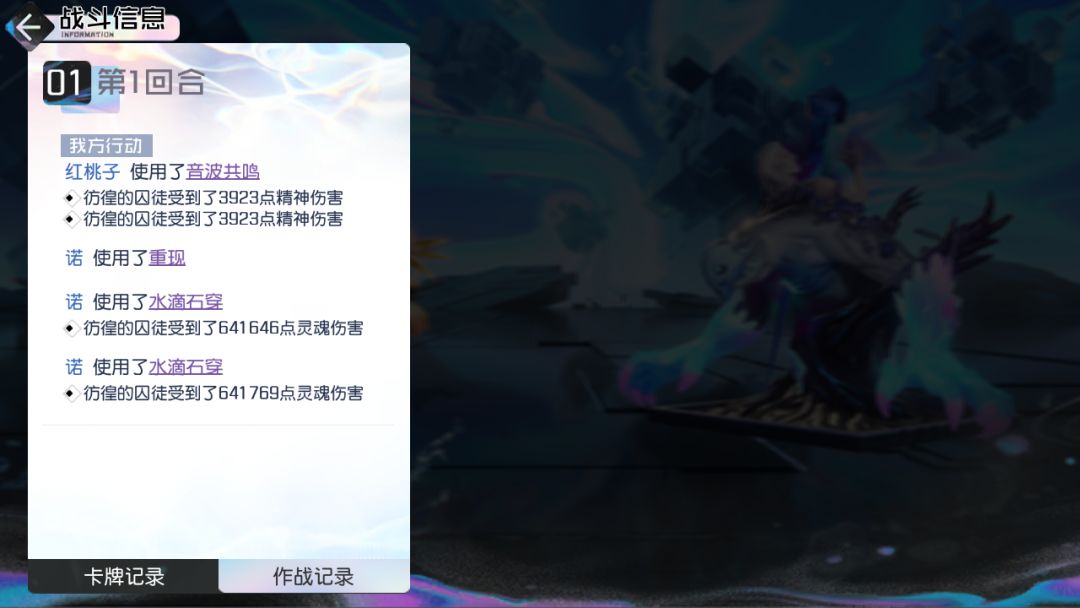 第二个BOSS很多小伙伴看到这个血量就已经被劝退了,或者被自己打BOSS的伤害劝退,其实大可不必,等级低战力低的小伙伴完全可以用重现+水滴石穿的方式打出两张牌,就可以获得低保了,当然攻略君还是主张能打多少打多少,毕竟要冲刺一下。