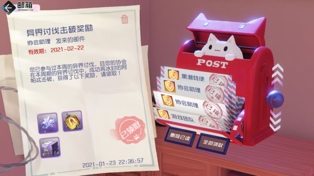 上面攻略君上周只打满了两只BOSS获得的奖励,高阶和高阶+的装备就不说了,20个异能结晶II和30个异能结晶I就足矣让攻略君的角色绯阶专武点上了那么一级,往往有时候绯阶专武从9-10就是质的飞越。