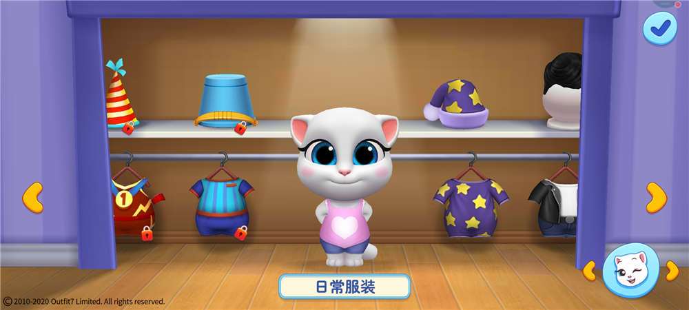 3、汤姆猫、安吉拉、汉克狗、金杰猫、狗狗本和贝卡兔还可以试穿服装啦,快去为它们挑选吧。
