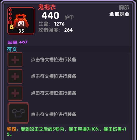 1.鬼袍,yyds,符文版本前最强的衣服,到现在重回王座,简单的触发限制,10%的暴击率在无视15爆伤的情况下已经很高了,且爆伤越高收益越明显,作为衣服也很少有不可替代性,强烈推荐更换。