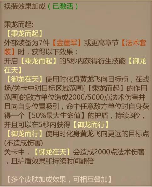 在任意单位身上召唤出“黄龙真气”,对附近250范围内的敌方档位造成持续伤害,持续15秒。