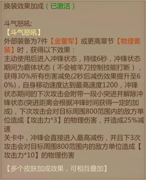 震天怒吼,提升额外攻击力,持续15秒,并且秒破周围低于400生命值的敌方普通单位。
