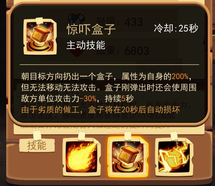 盒子出现的前5秒可以还会对附近敌方适当debuff,减30%的攻击力,配合前排重甲兵,能有效提高前排的耐久度,为后排提供输出时间。