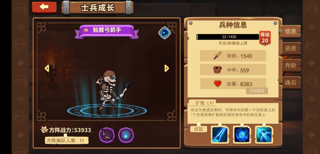 无骷髅兵不亡灵,前排核心兵种(好吧只玩一个种族,前排抗揍的也就只有他了),过了新手期必得一个A+骷髅兵,但是你通关地图要记得选他的魂石哈。