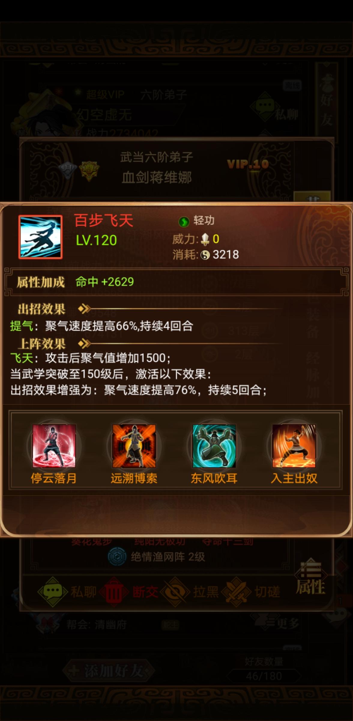 120级百步飞天效果为聚气速度增加66%,125级效果为聚气速度增加65%,我区还有人148级百步飞天效果同为聚气速度增加66%,有图有真相如下。