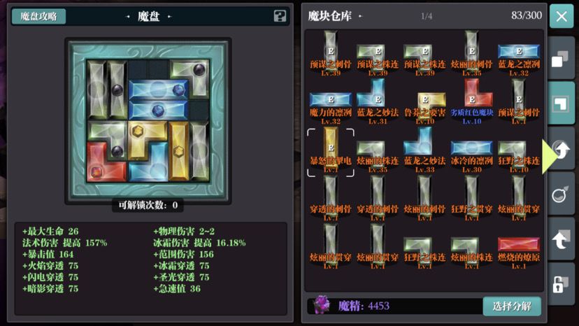 补充一个魔盘顺时针转1下,魔力穿透+致命一击。顺时针转2下,魔力穿透+探险家。这套盘原始盘打boss蛮好的,就是不能白嫖哥布林了。