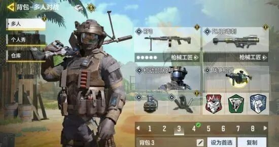 主武器的配件趋向于灵活,这里推荐热门冲锋枪HG40;副武器推荐选择手枪,以避免出现主武器没有弹药时,无力作战的尴尬局面。士兵大招推荐选择战争机器,有它在即便敌人攻势如何强势,也会被我们削弱甚至是瓦解,毕竟它不但可以克制人型目标,而且还可以克制连续得分奖励中的地面目标。投掷道具选择碎片手雷和闪光弹,两者结合可以帮助我们撕开对手的防线。被动技能则建议选择可以提高我们生存能力的快速治愈、强韧和警觉。连续得分奖励
