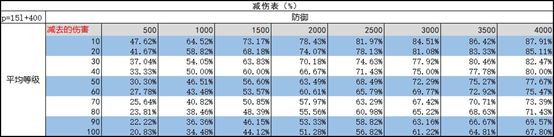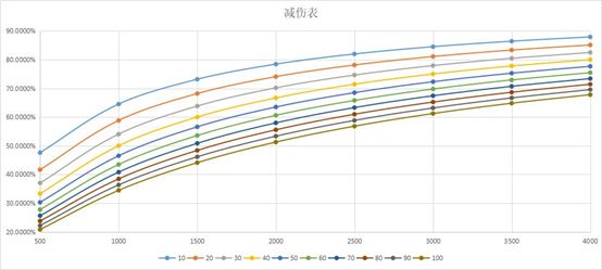 而防御方的减伤系数计算方式为
