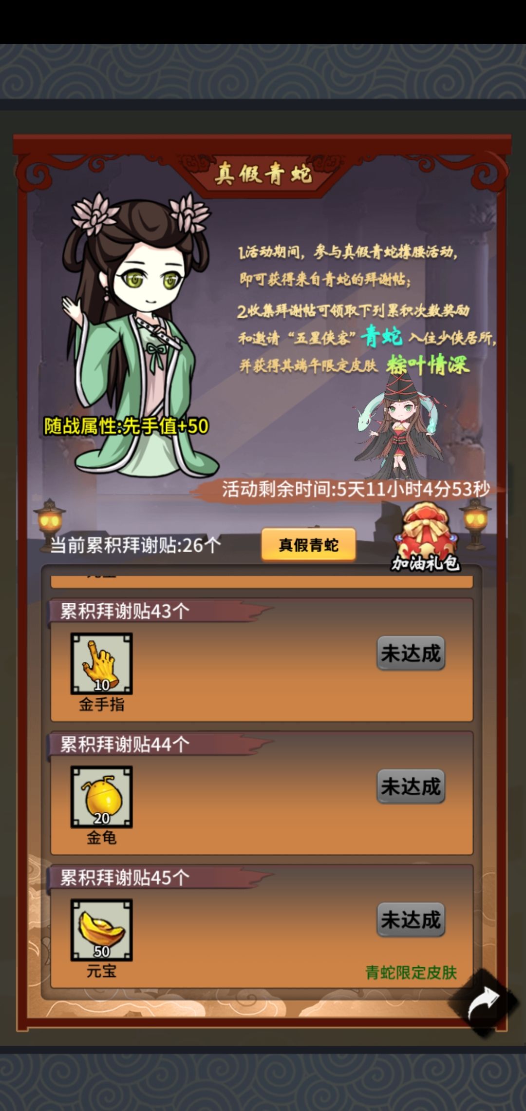 写着送粽叶情深皮肤,展示的却是黑无常。到底送哪个?送黑无常我就不氪了。