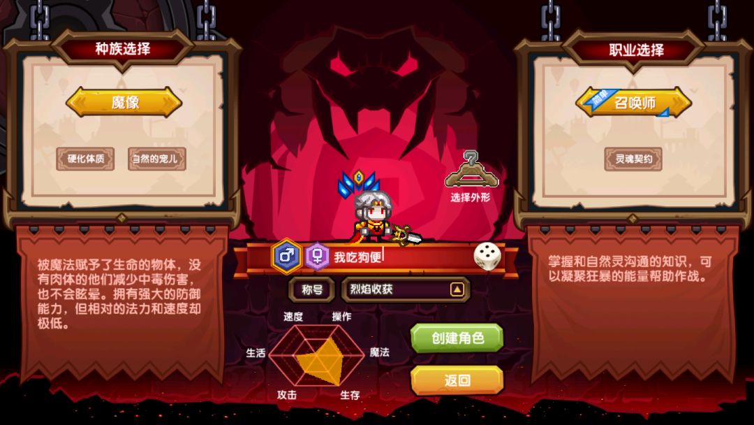 关于种族和职业选择 ,新手的话我这里推荐魔像,召唤师开局。