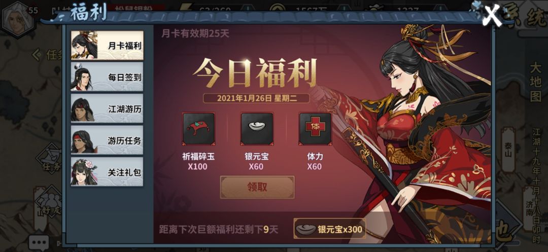 不论氪金与否,游戏本身的福利还是值得肯定的,日常与活动给的银元宝并不算少(当然永远不够用)。如果说金元宝是加快游戏进程,那银元宝就是实打实的货币了,钱都不会花那肯定输在起跑线上。