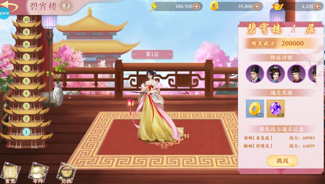 小主在主界面点击“碧霄楼”即可进入碧霄楼界面,初始位置是一层。