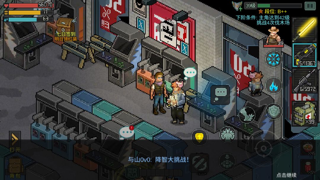 此外,幸存者还能将自己的宠物幻化成与山0v0、逆风笑的二次元形象,就像Up本人协同作战一般。而Up主的诸多经典对白,如逆风笑的“逆风笑,屁股翘~”和“顺风哭,日更笑”等也在《像素危城》中再现。
