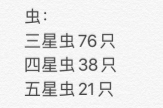 虫类的话,因为楼主自己卡住了,所以一直在问其他人的,可能更新会慢一点
