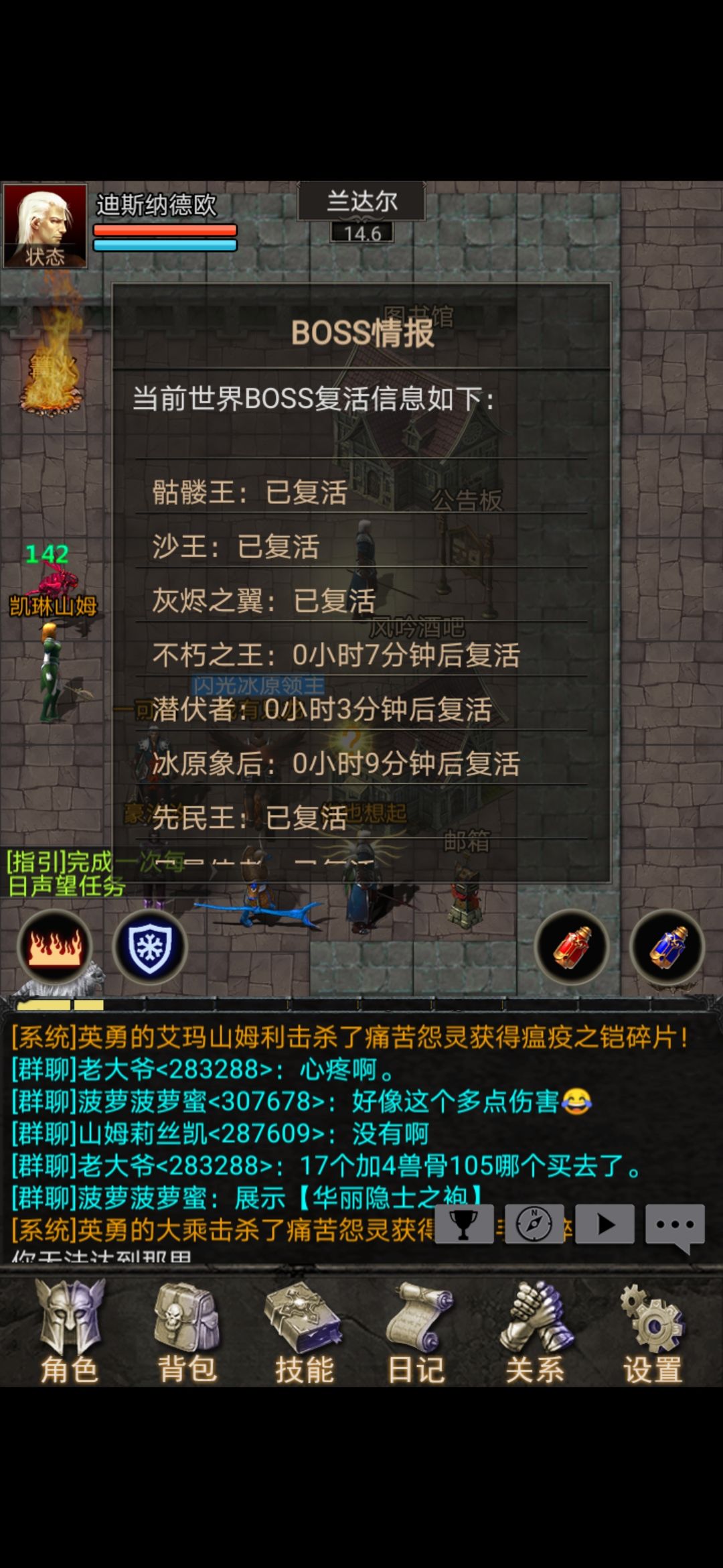 这个可以通过公告栏里的boss查询得知boss的复活时间和位置,比如打个例子骷髅王,上面会写骷髅王复活时间和具体位置上图上图