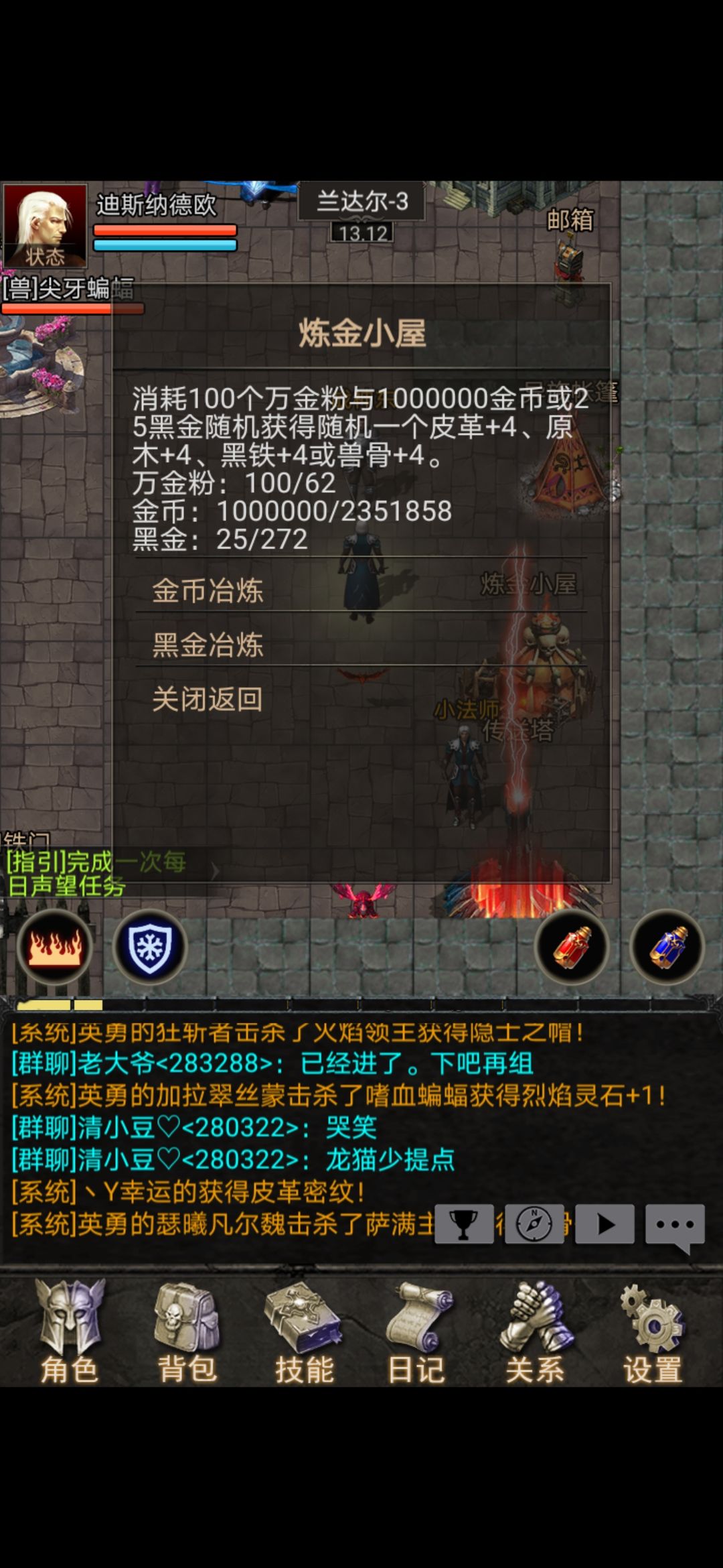 2.黑金怎样获得?可以通过野外boss幻境boss获得野外boss,可以看公告栏里的boss查询每个获得5黑金,幻境这个就很推荐了新手1-20级可以去刷幻境直冲boss杀然后杀红蝙蝠,注:红蝙蝠不可获得黑金但可以合成材料去拍卖会卖。我是三区的只要你一喊加四材料15金出售就肯定有人秒这是个快速刷金的好办法,或者可以去拍卖场买萨满门票刷萨满领主, 他掉落生命精华这个很值钱基本上40个卷轴出了3个就血赚并且一定卖的出去。