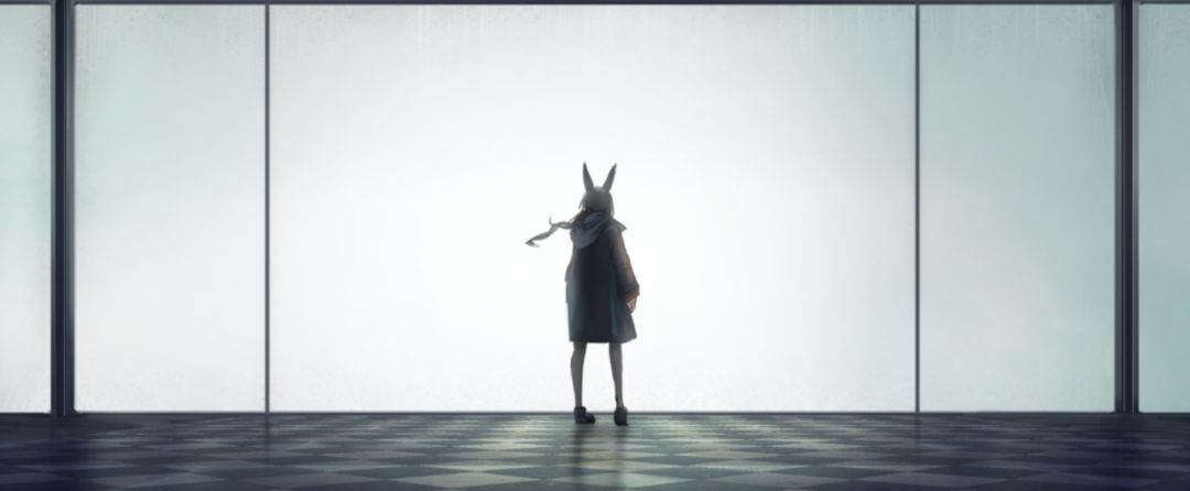 配图中,游戏的女主角阿米娅站在玻璃幕前,面前是一片白色光芒。
