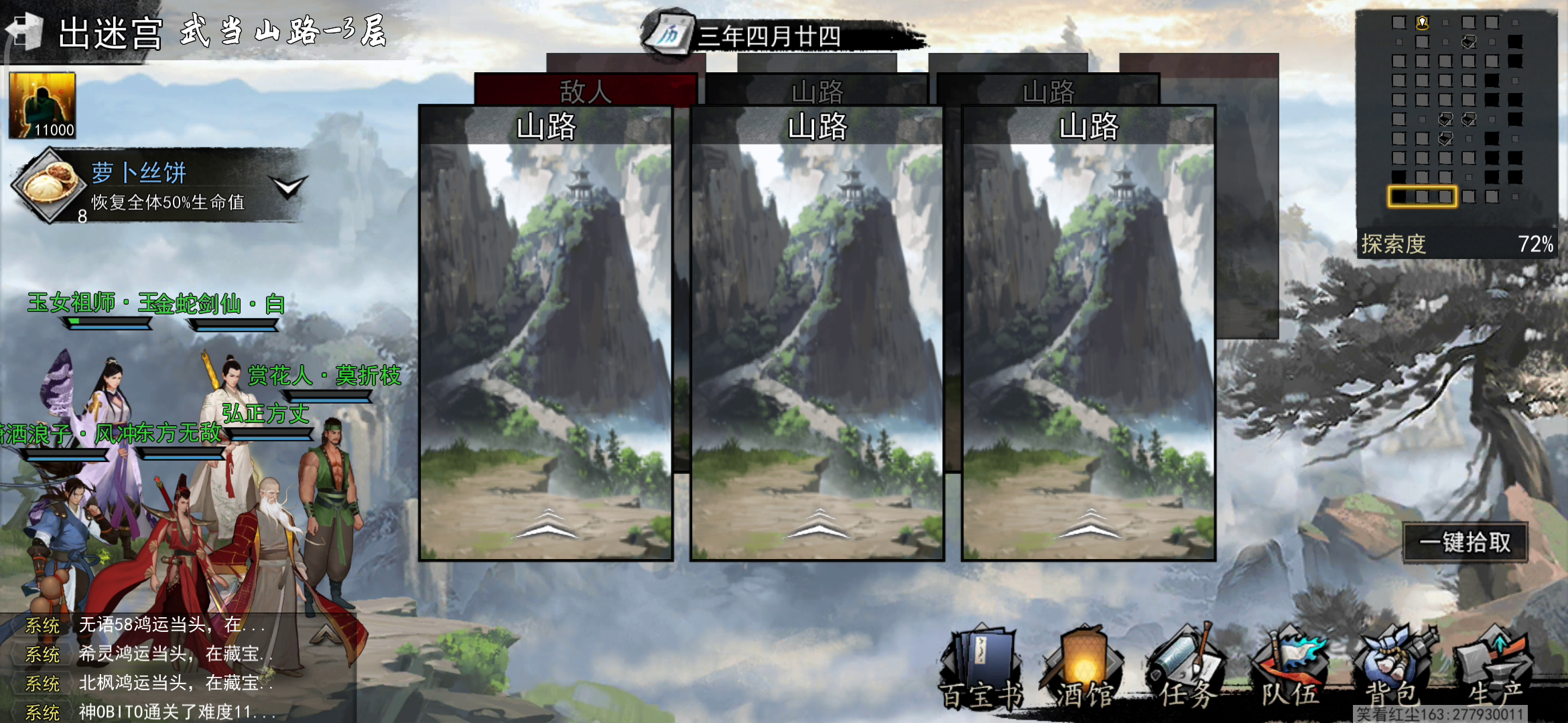 4、设置好自动,该伤心的伤心该玄铁的玄铁,剧情就不用手打了。追击在武当山路3层,用方丈是想普度来波双杀(……出师未捷),玄铁巨剑眩晕挺好,我这主要是用来降低绝招率,以防玄冥拜月灭队。