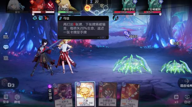 攻略君解读:BOSS偷1张防御牌,回合开始时,BOSS获得最大生命2%的护盾,持续2回合。