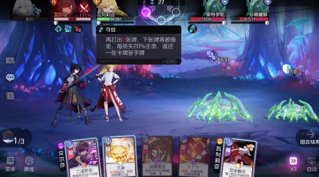 【未来】:使用静电场降低BOSS的攻击,并且增加2个单盾增加防御。另外苏生可以湮灭出现的【伤痕】牌。