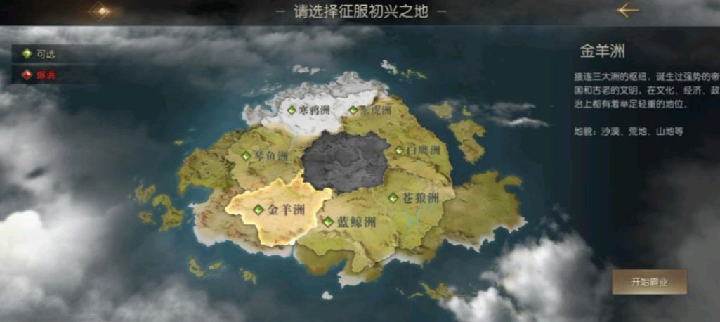 在选择好文明后,就到了征服之地的选择了,这个也是不能随便选择的,要仔细观察每个地区的描述和地貌来作出选择。