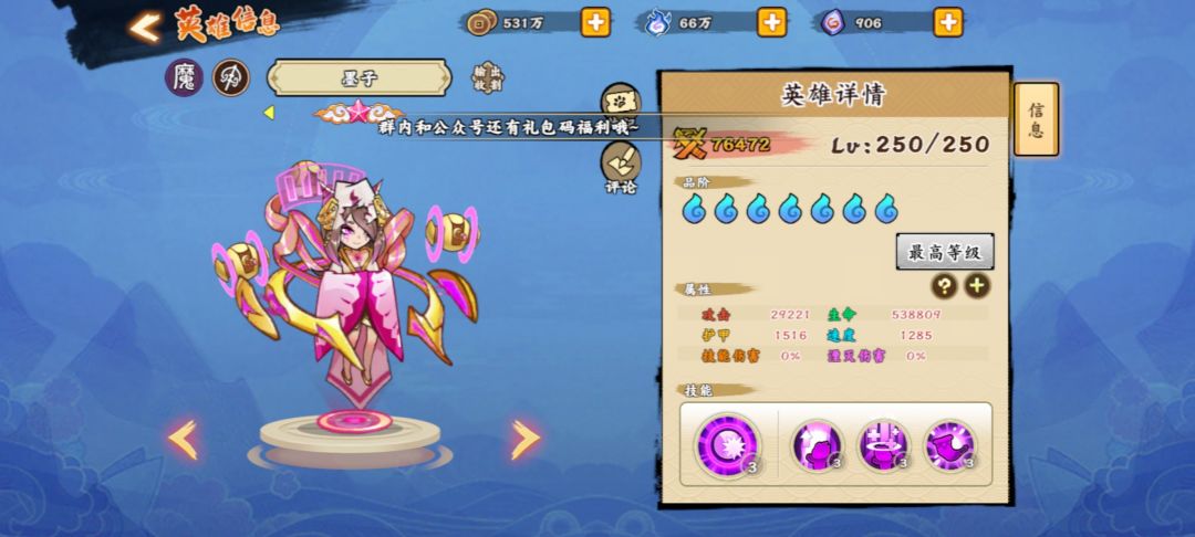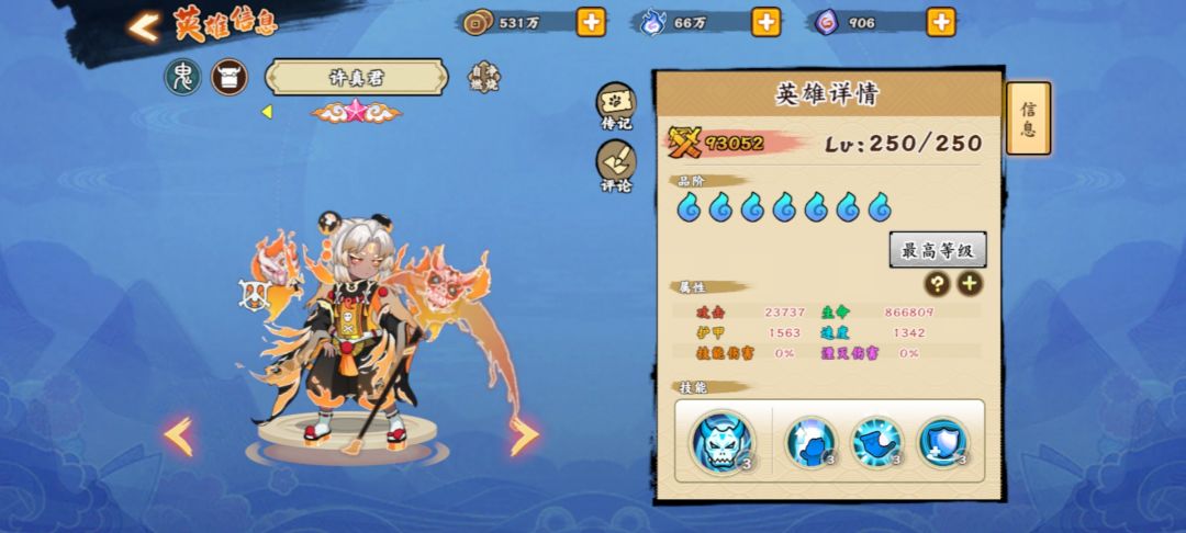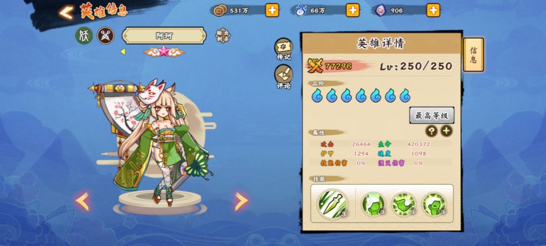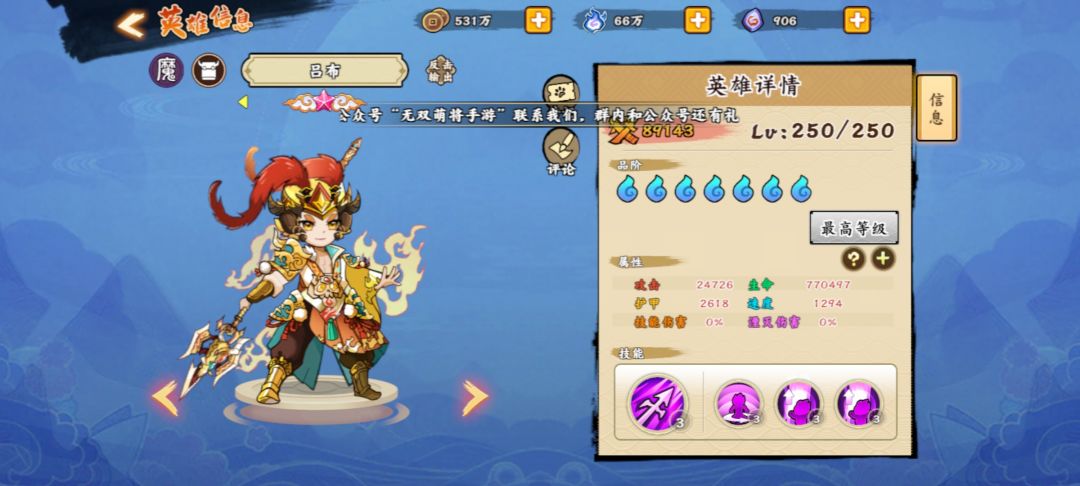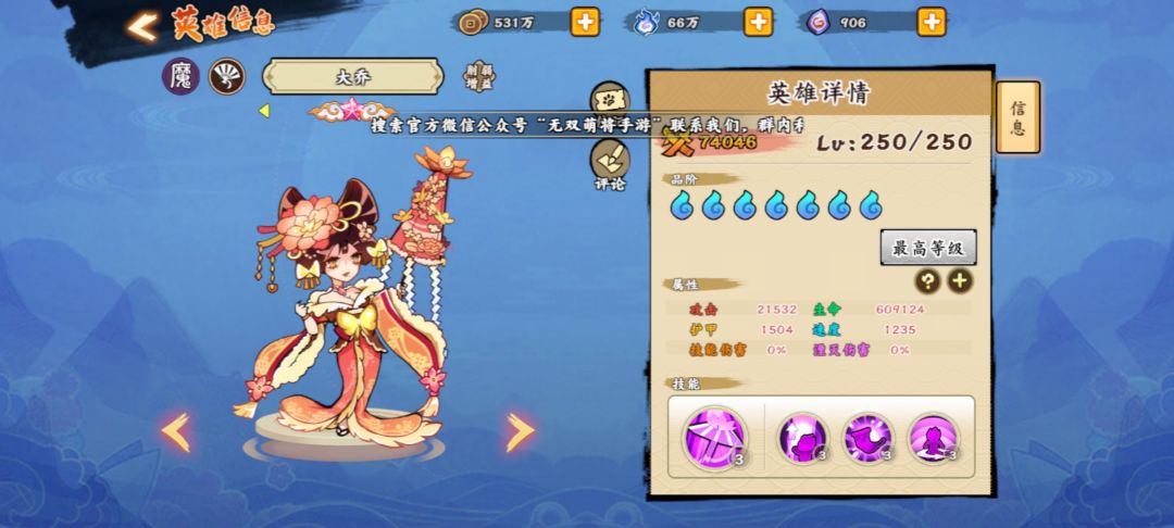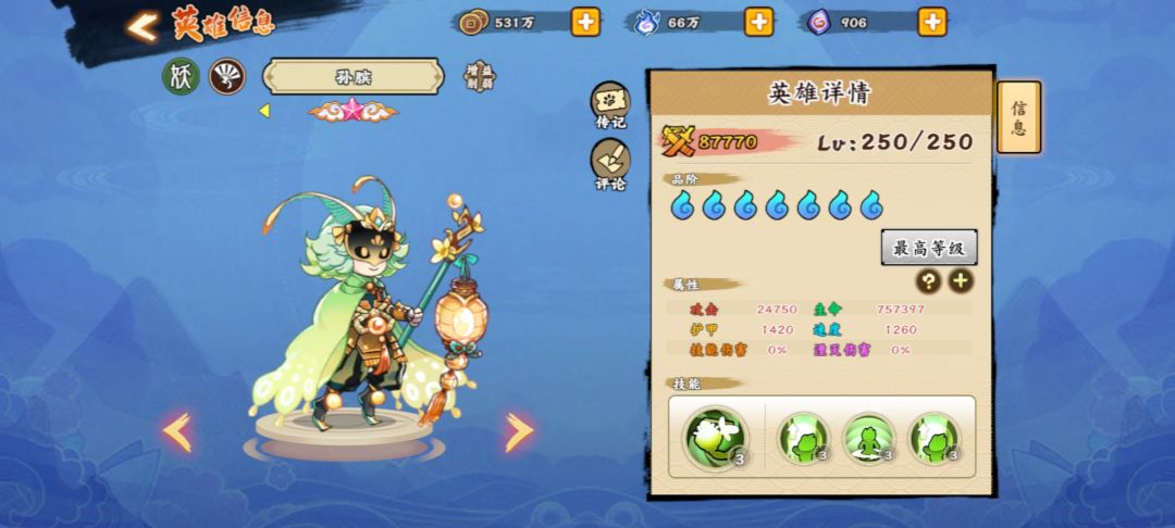 综合评价:未来可期,但是不建议萌新培养,采取措施可以和魔族大乔一样,先暂时留存在手中,或者作为貂蝉白素贞的狗粮使用。