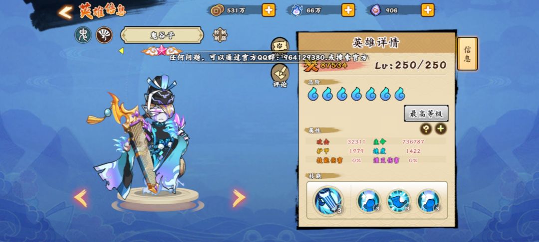 综合评价:基本属于必须培养的角色,是全期都能无比强势的王牌角色,建议萌新在培养完主C后立刻培养鬼谷子。