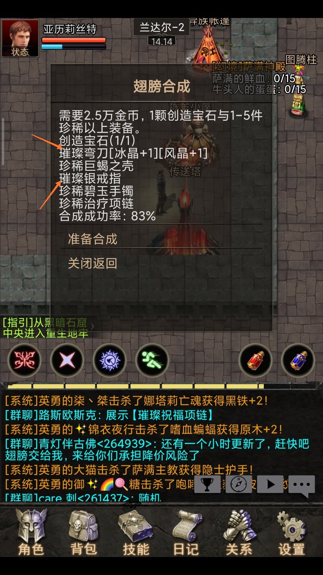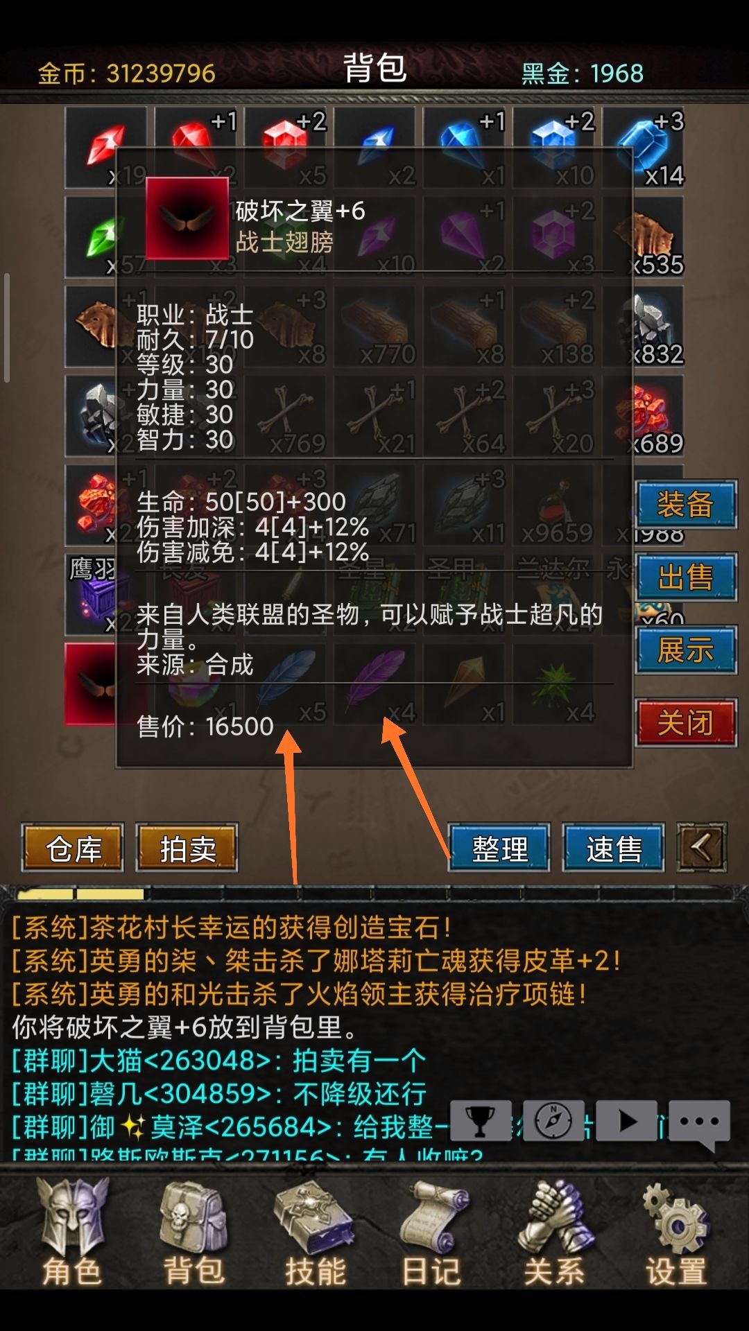 合成翅膀需求:一颗创造宝石和1-5件珍稀级别以上的装备做为材料(附图)创造宝石怪物可爆出也可以拍卖行上买买买