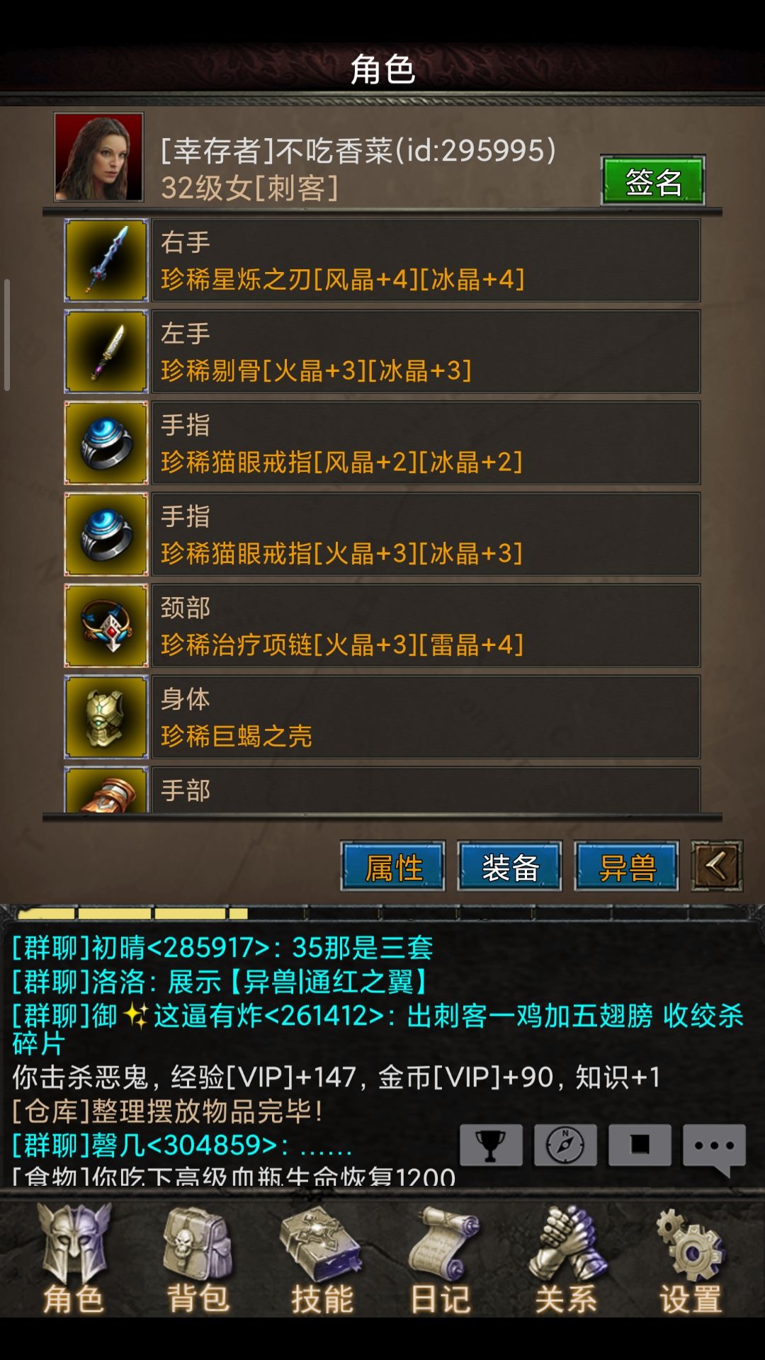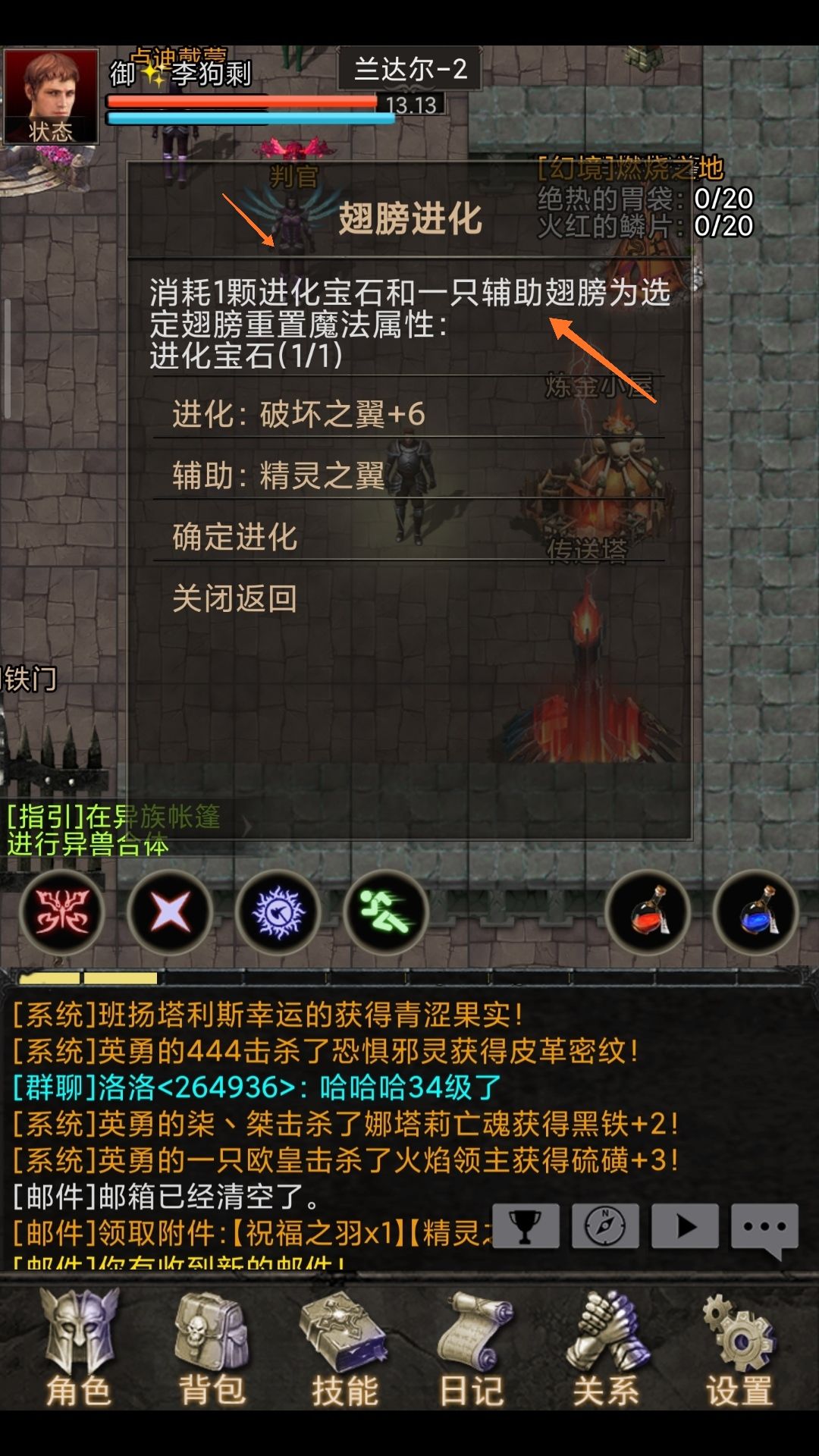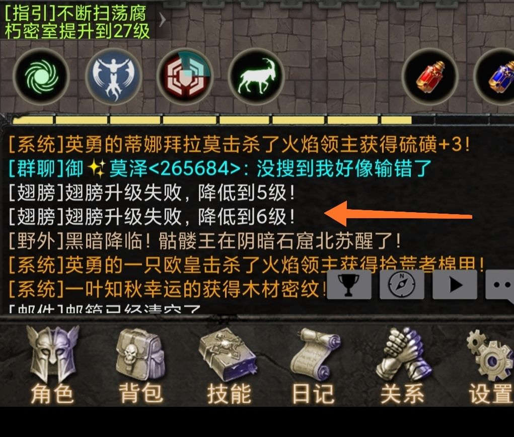 这个是狗子把系统送的装备全拿去合成翅膀的号,现在到了32级还在挂恶鬼👻有时候还会暴毙...心累。