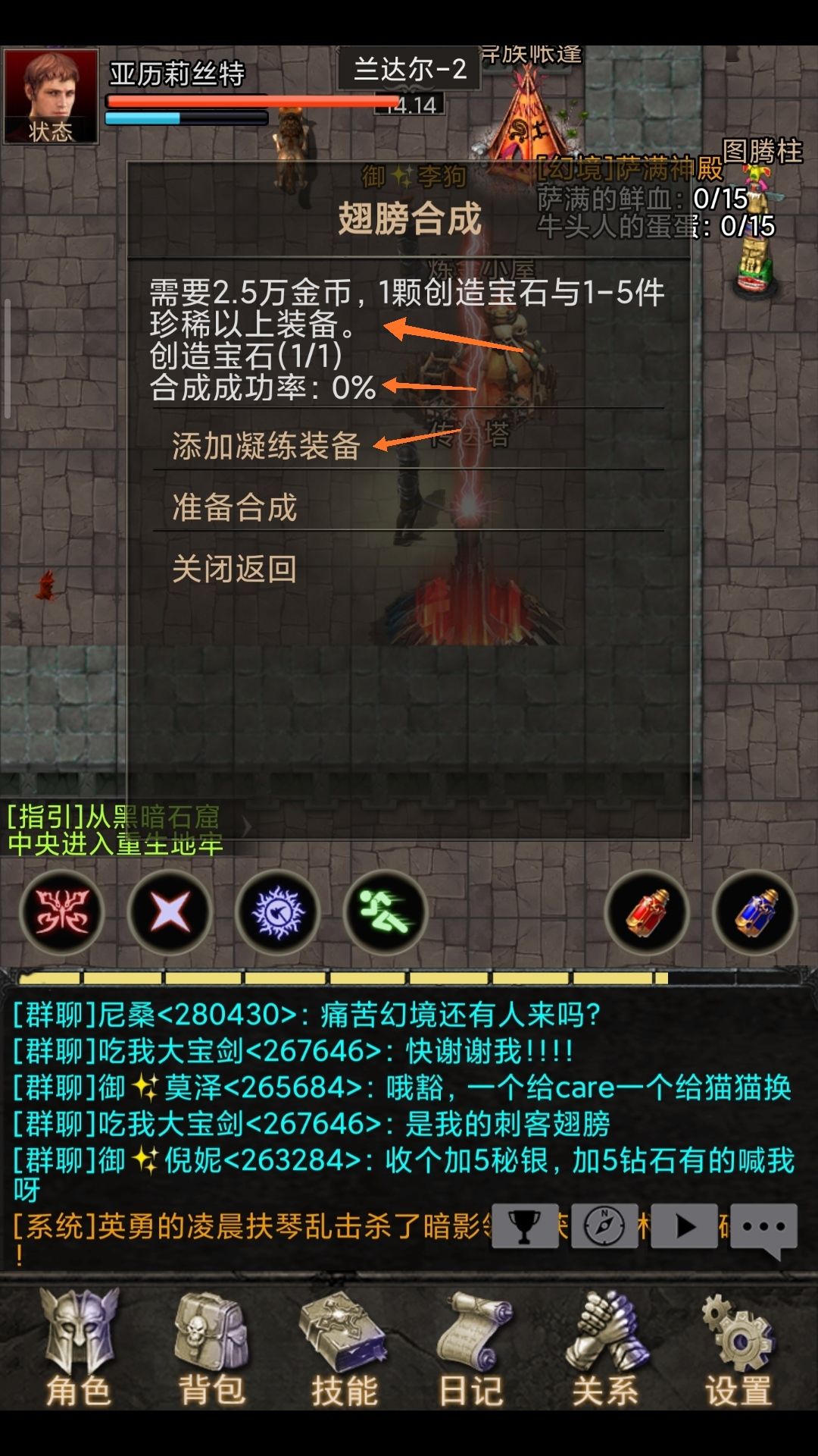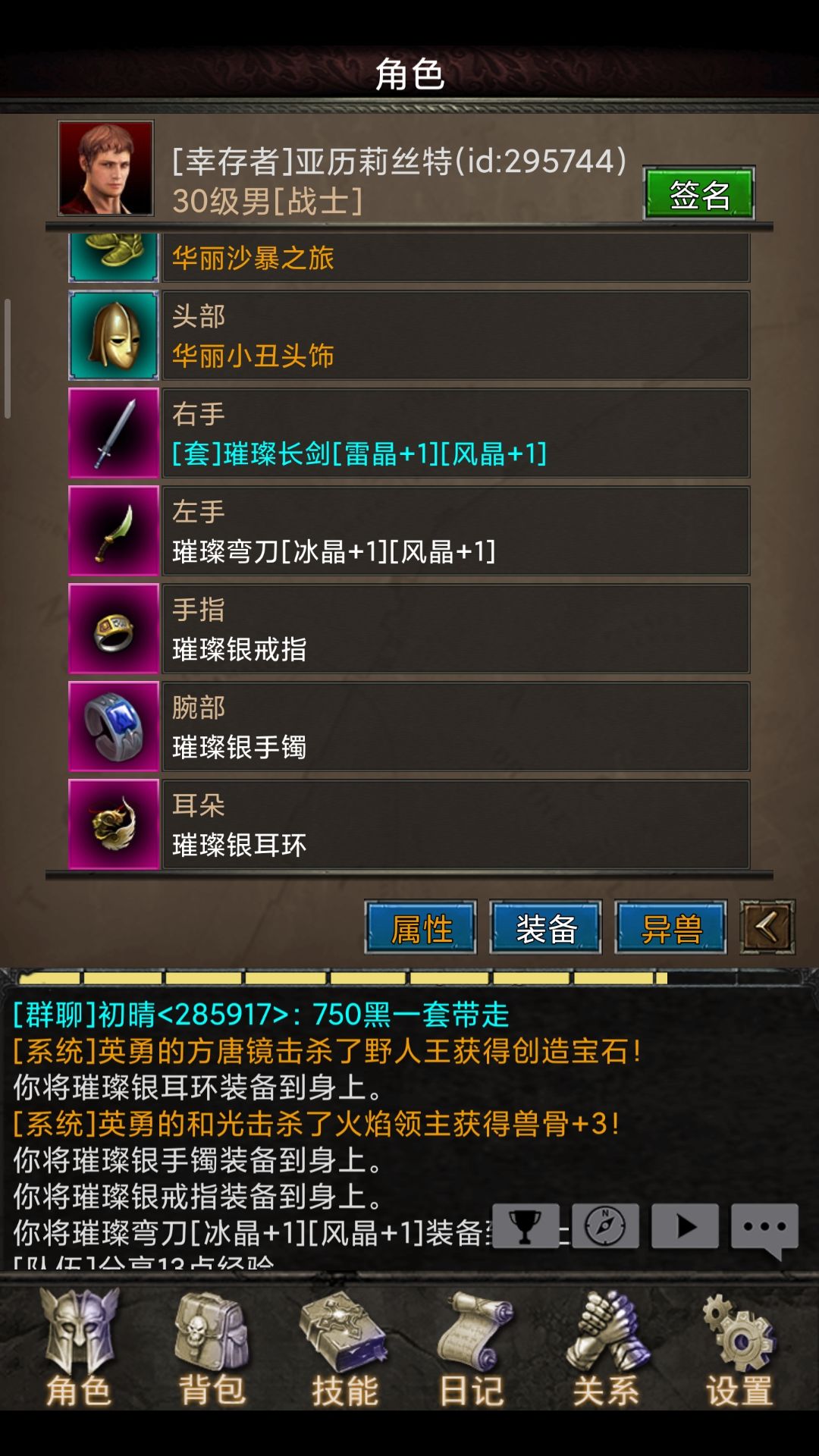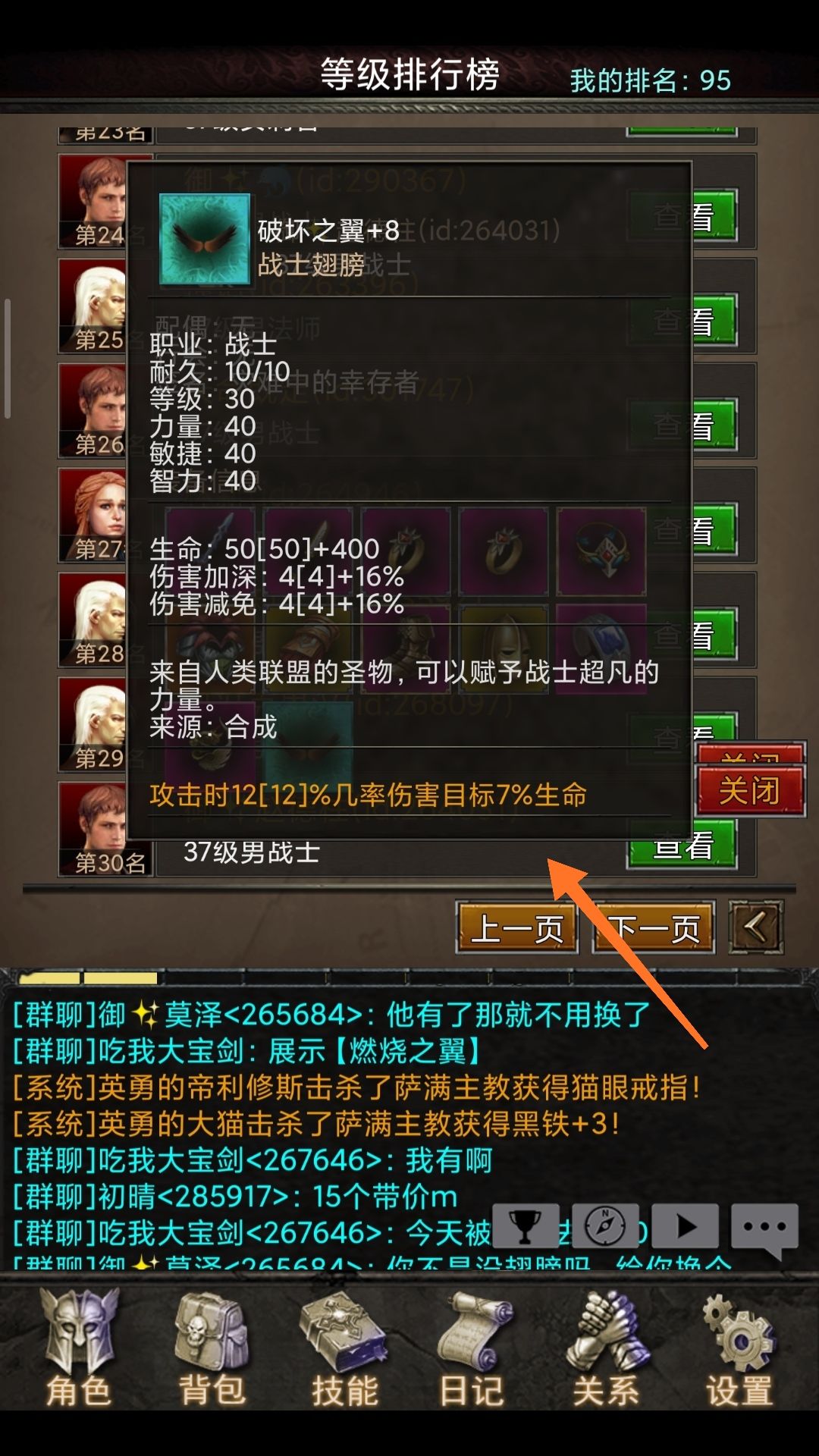 这个是狗子把系统送的装备全拿去合成翅膀的号,现在到了32级还在挂恶鬼👻有时候还会暴毙...心累。