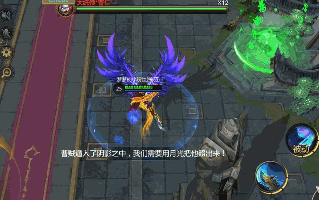 梦梦小贴士:1. 曹仁隐身后会随机出现在地图四周,隐藏在团雾之中,大家需要收集月光来破除曹仁的隐身团雾。