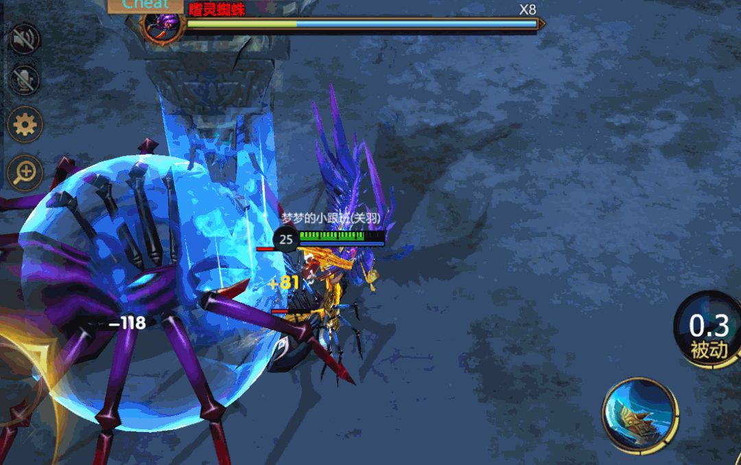 4. 蜘蛛召唤在附近召唤处小蜘蛛攻击玩家,如果击杀玩家,则同时召唤出别击杀的玩家英雄单位与玩家战斗。