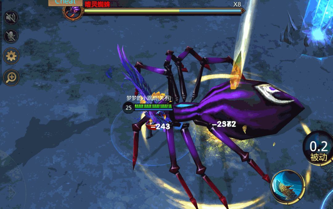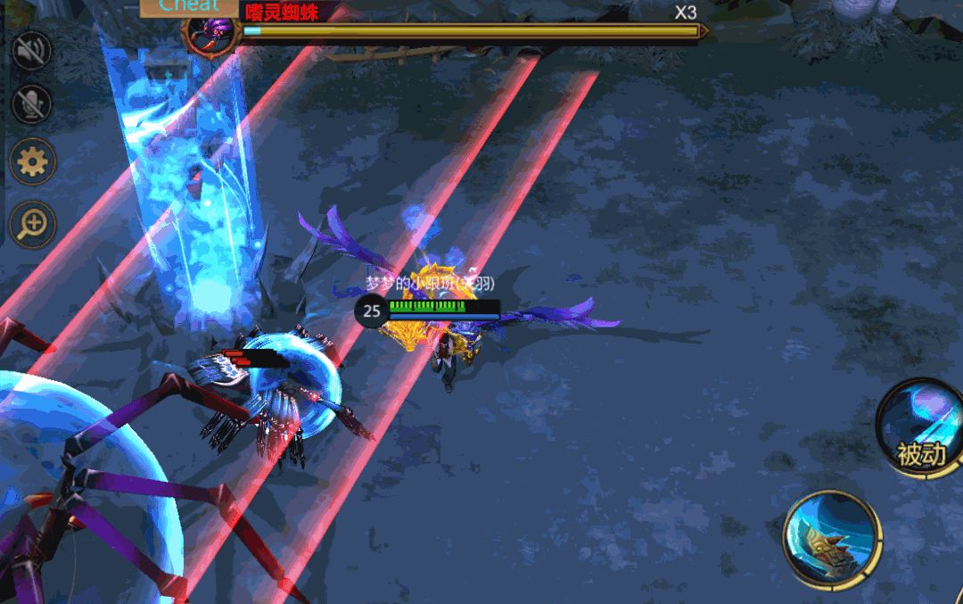 注意,在地图中存在有5根石柱,每次大蜘蛛获得蛛灵魔盾后,会有随机一个石柱出现光柱,只要将大蜘蛛引导至光柱中,就能破除蛛灵魔盾。