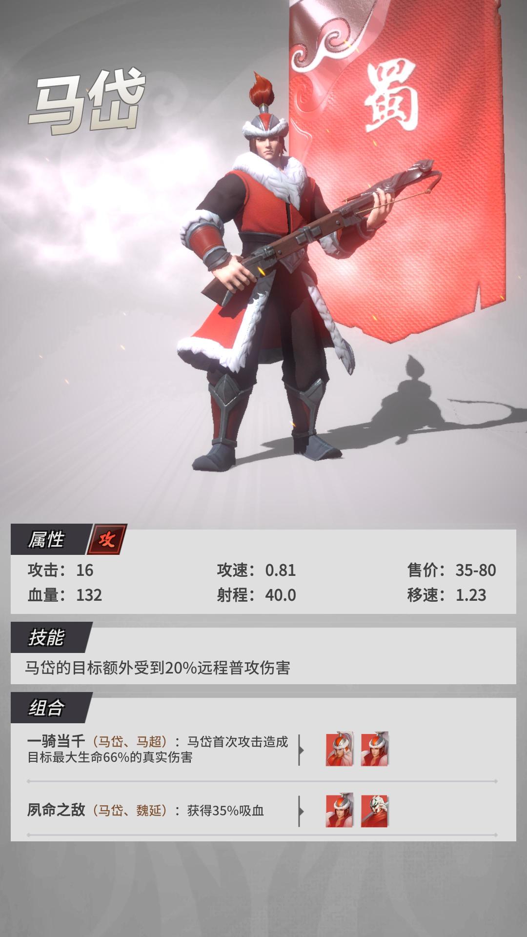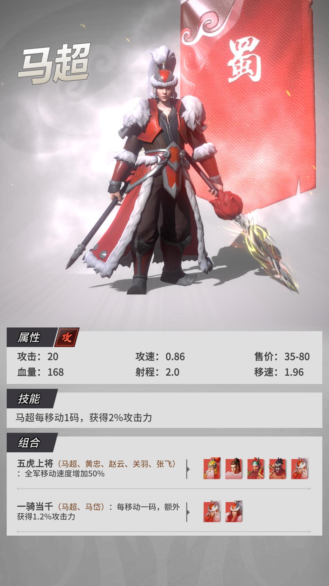 身为“马家军”最知名人物、五虎将之一的马超,在游戏中拥有一个神奇的技能:每移动一定距离,攻击力将获得百分比加成!这意味着马超在场上跑得越远、攻击力越高,如果让他满场飞奔哪怕血牛肉盾也能一击绝杀,颇有骑兵奔袭冲锋、乱军丛中取上将首级的风彩!派他上阵时,不妨将他的位置放在最后场,确保他第一次接敌就拥有不俗的攻击力!