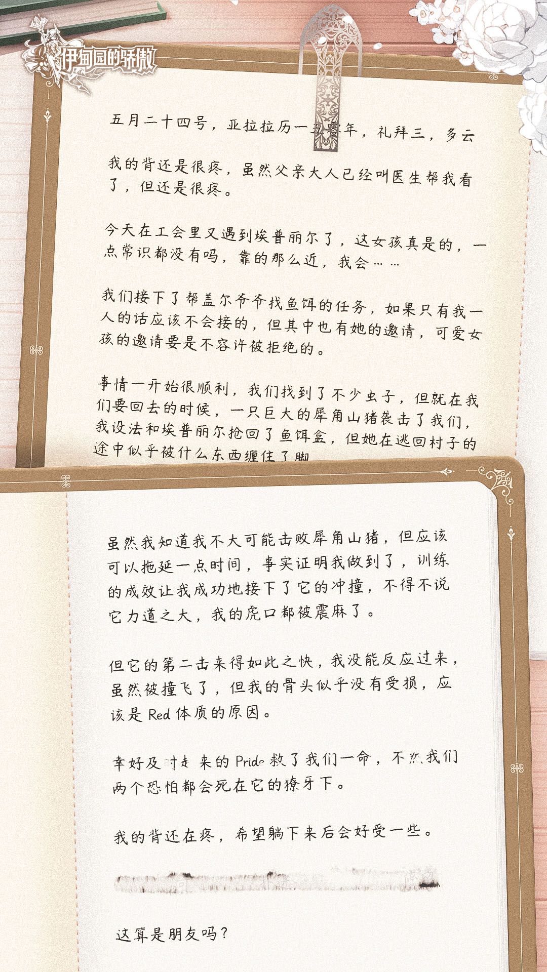 就像在一场伟大战斗后凯旋而来的勇士那样,埃普丽尔豪迈地又一次动笔留下了她的大作。大小姐今天直到深夜才回到屋中,她是遇见了什么危机才如此疲惫吗……?