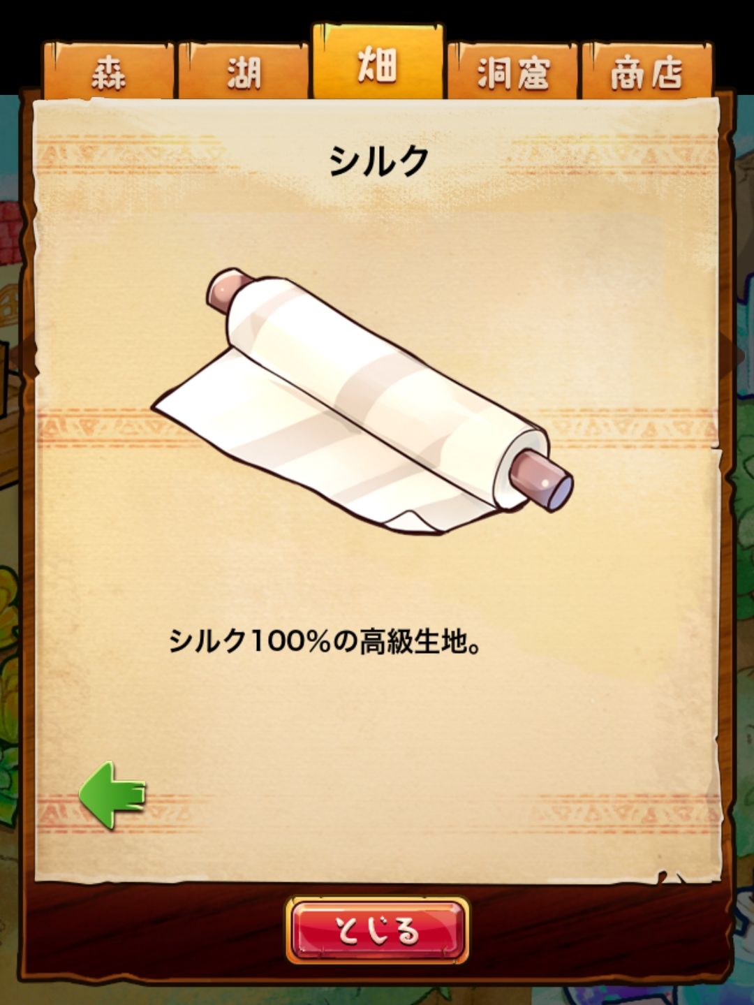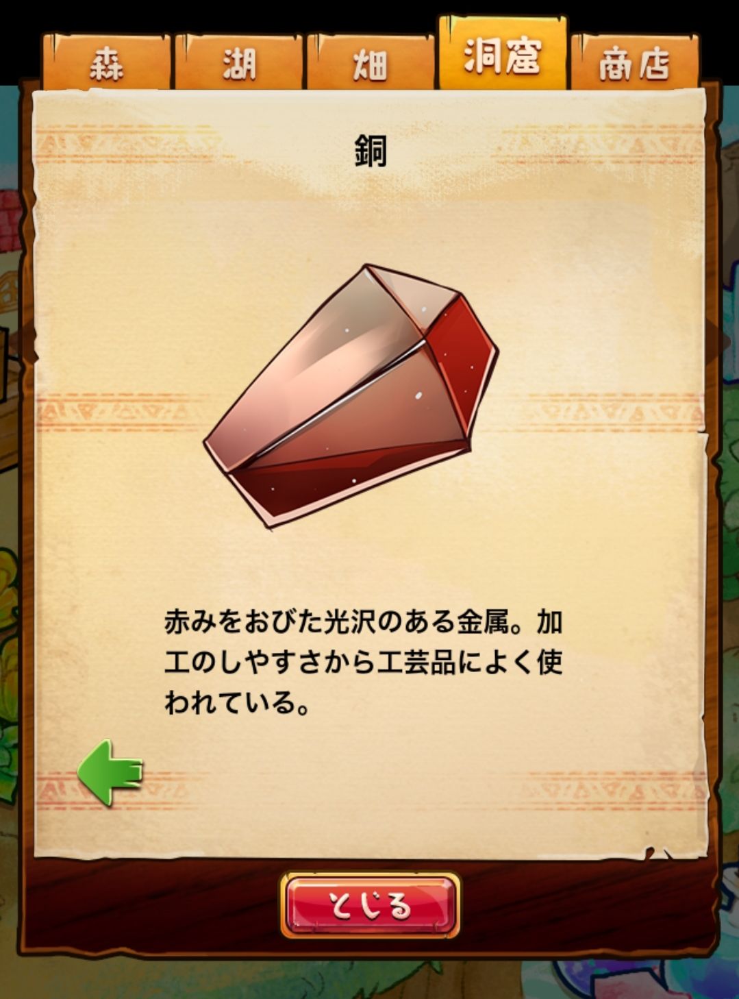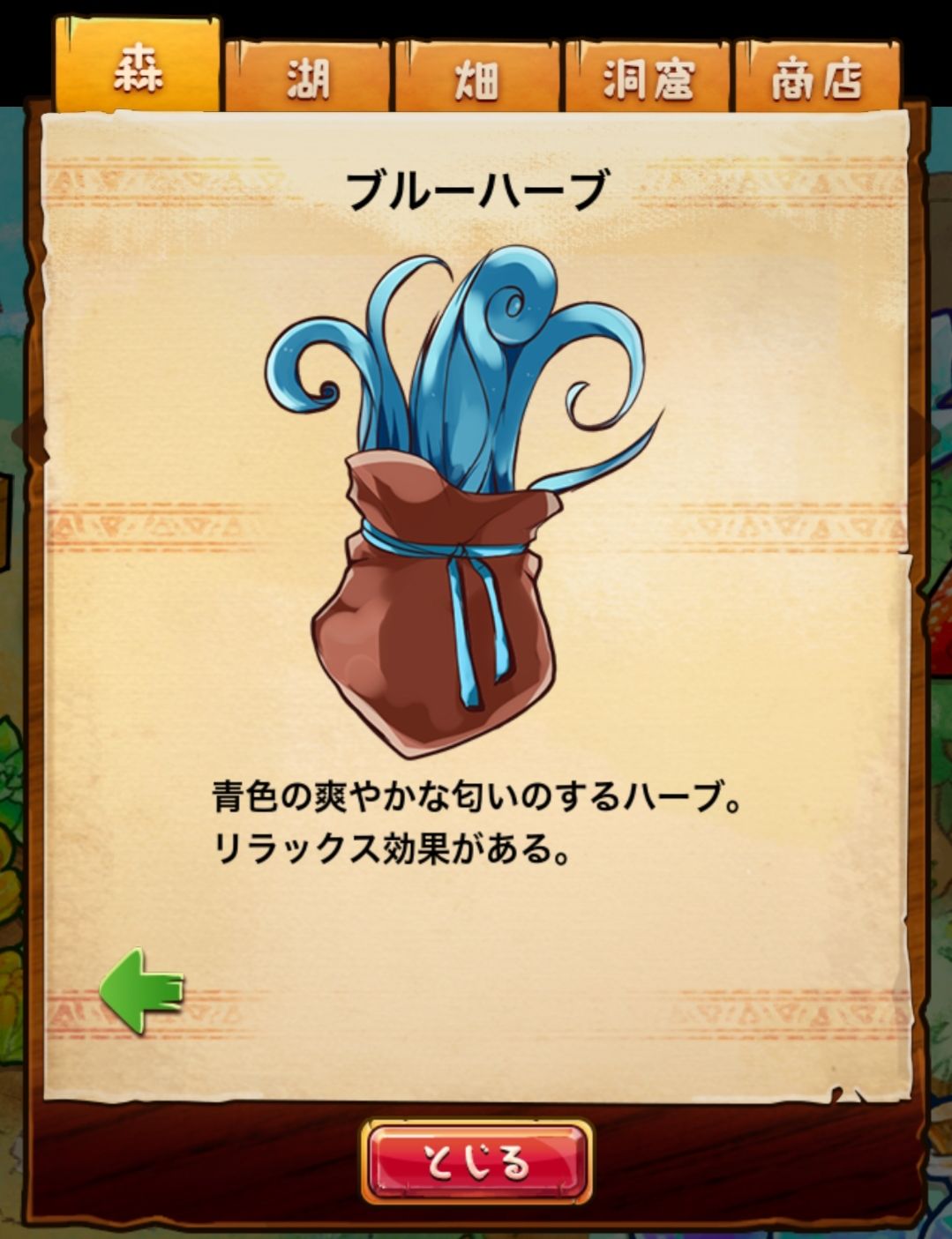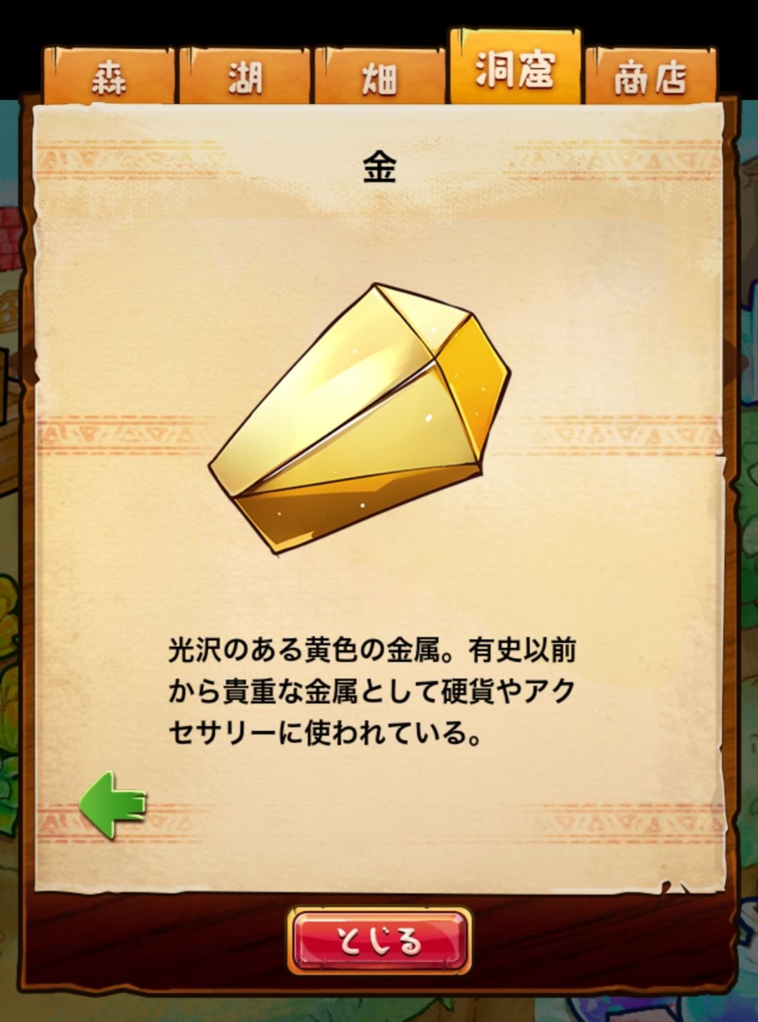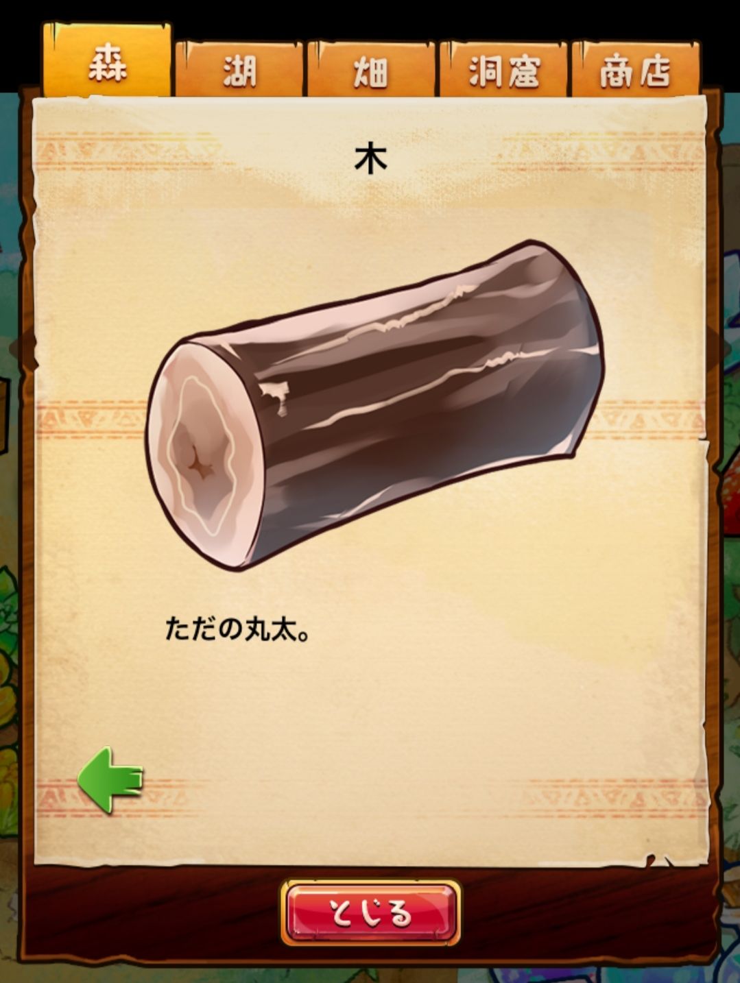材料分五个地方: 森林,湖,田,洞窟和商店
