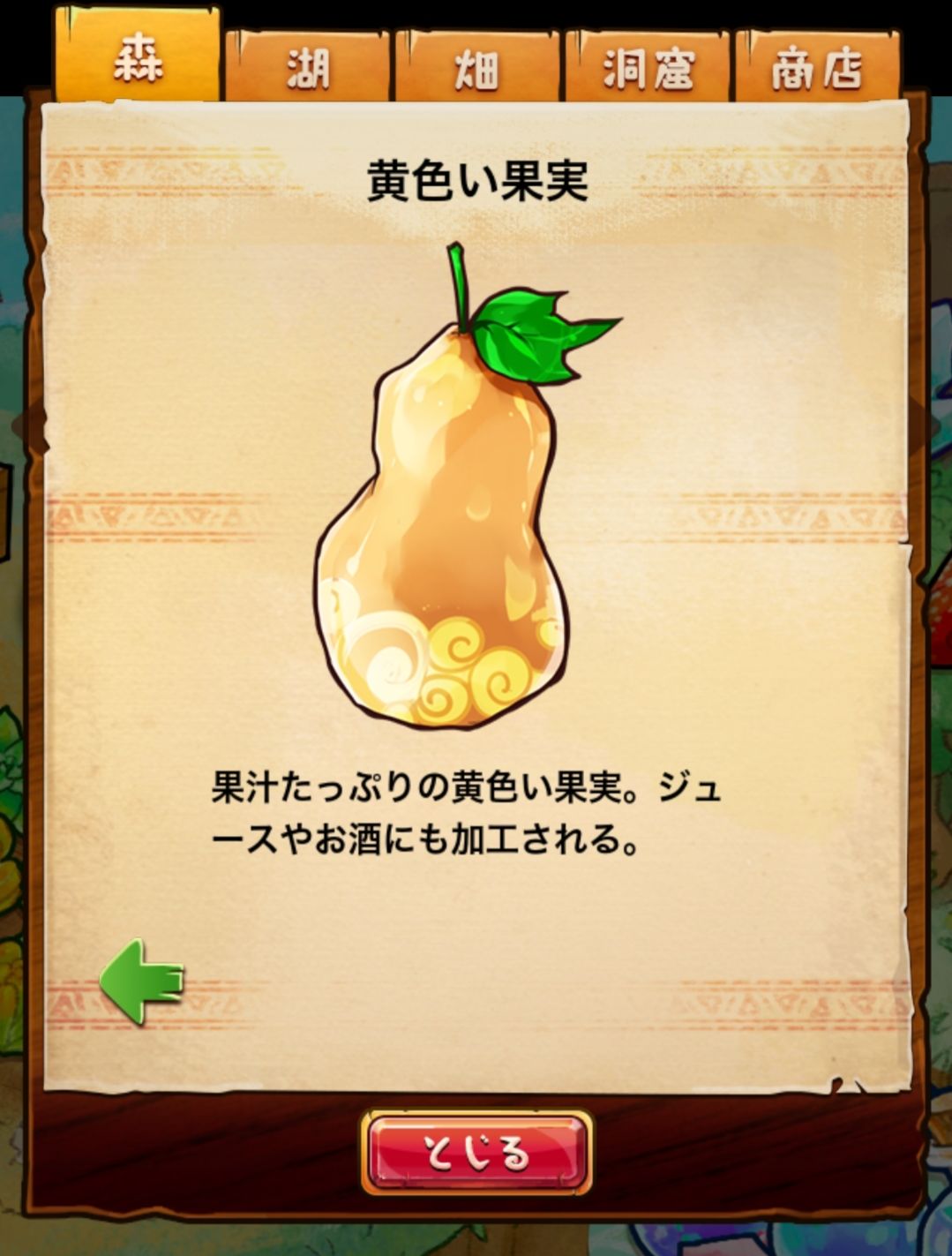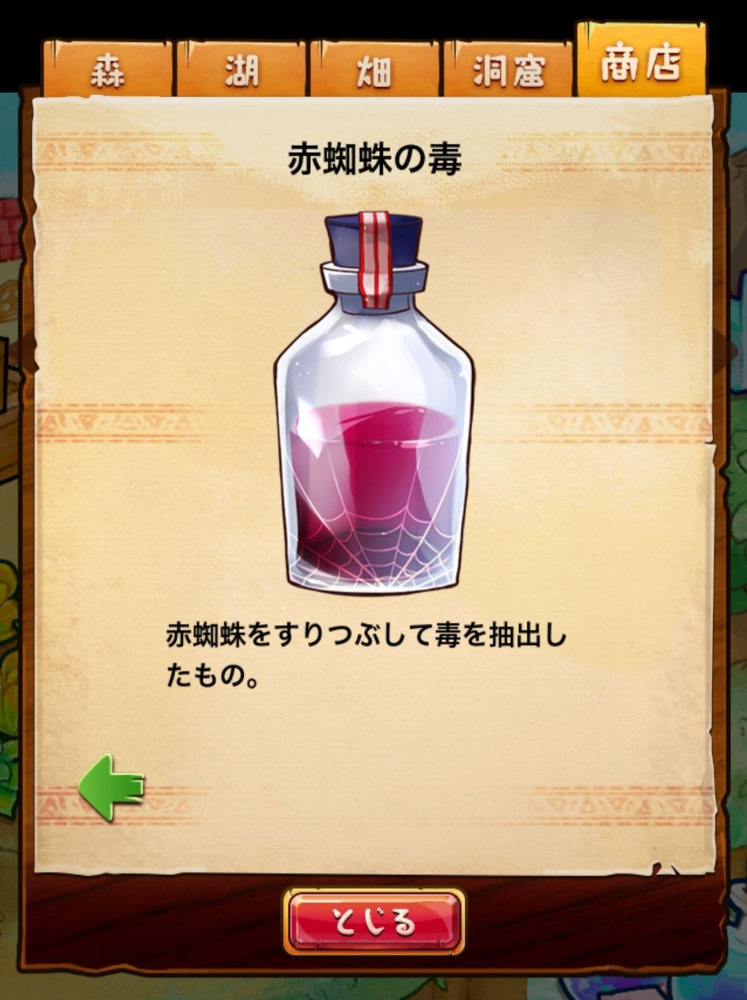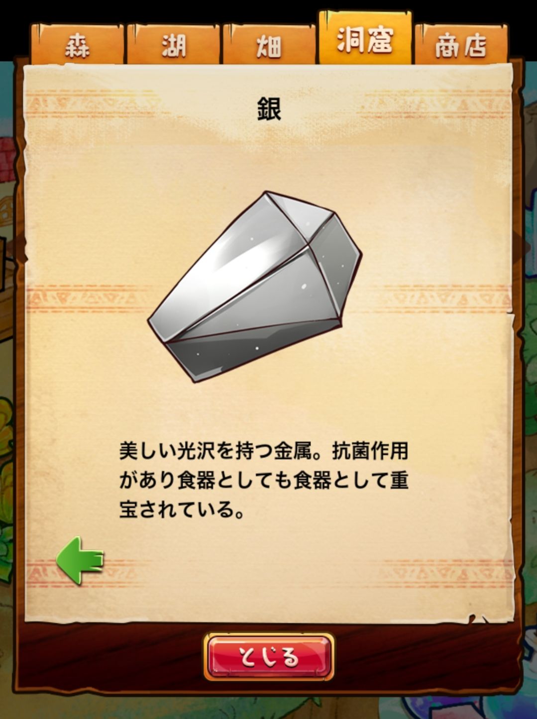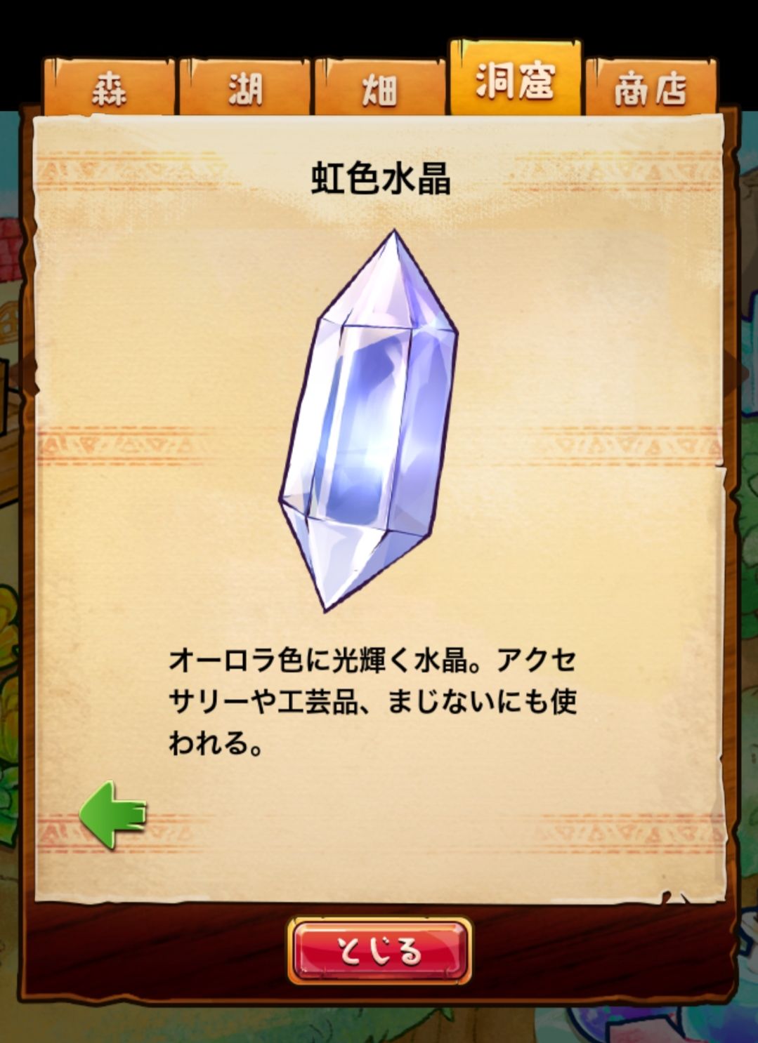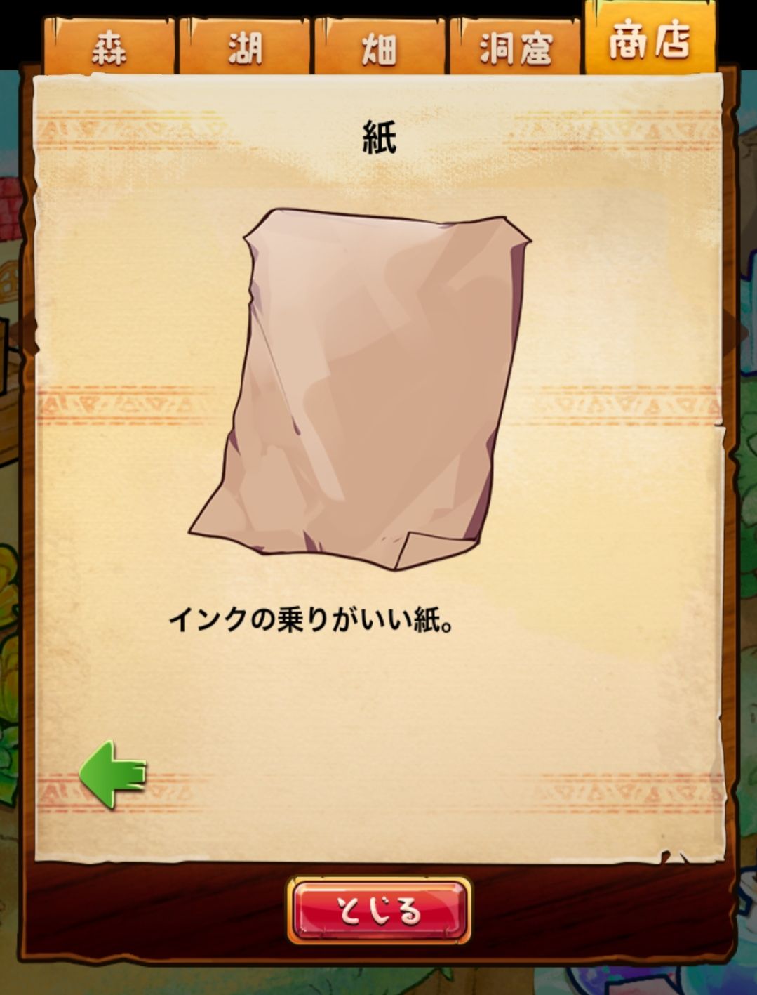 材料分五个地方: 森林,湖,田,洞窟和商店