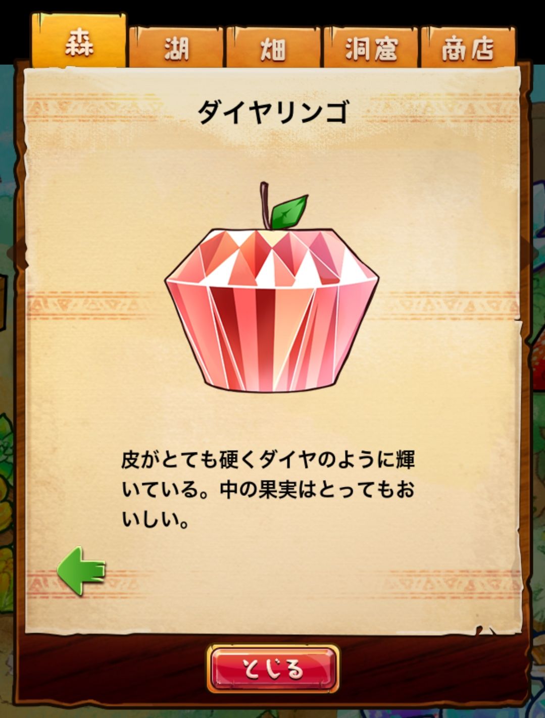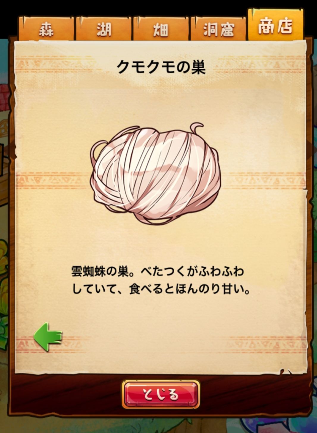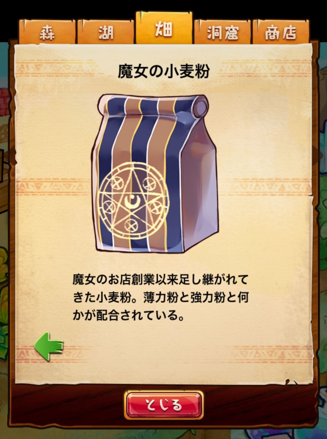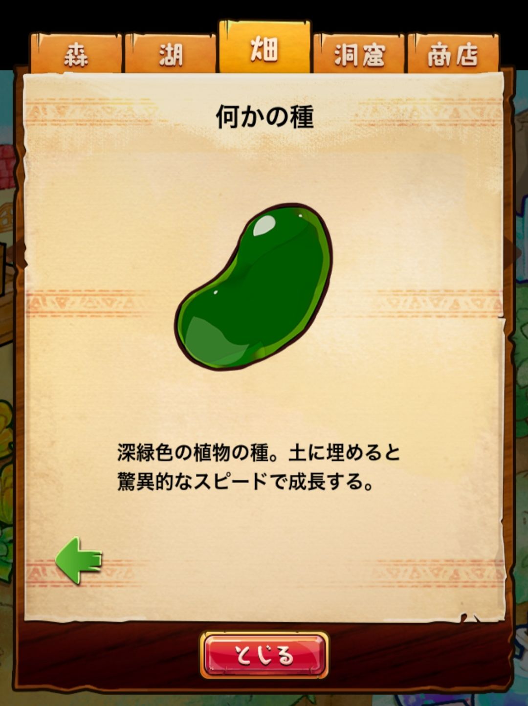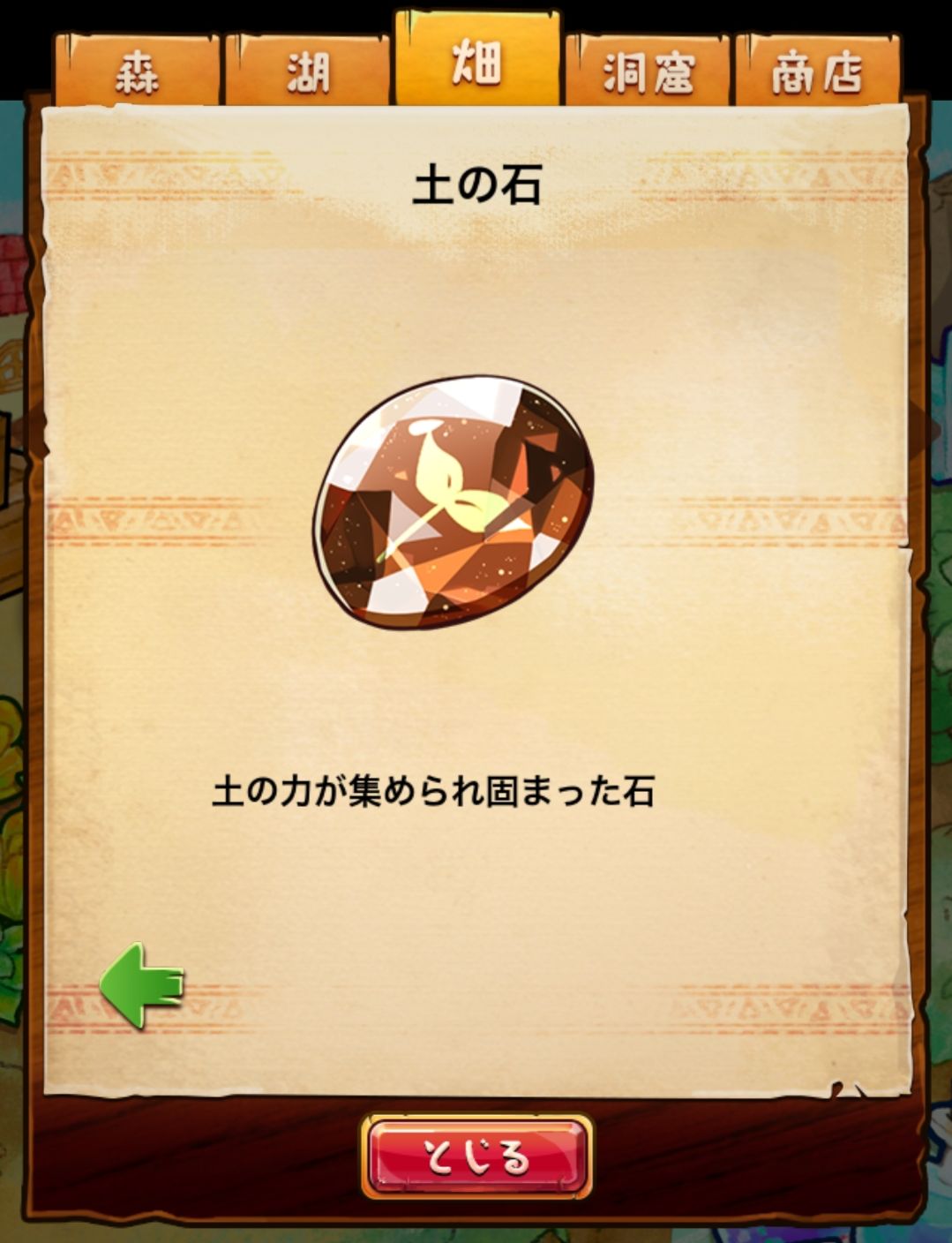 材料分五个地方: 森林,湖,田,洞窟和商店