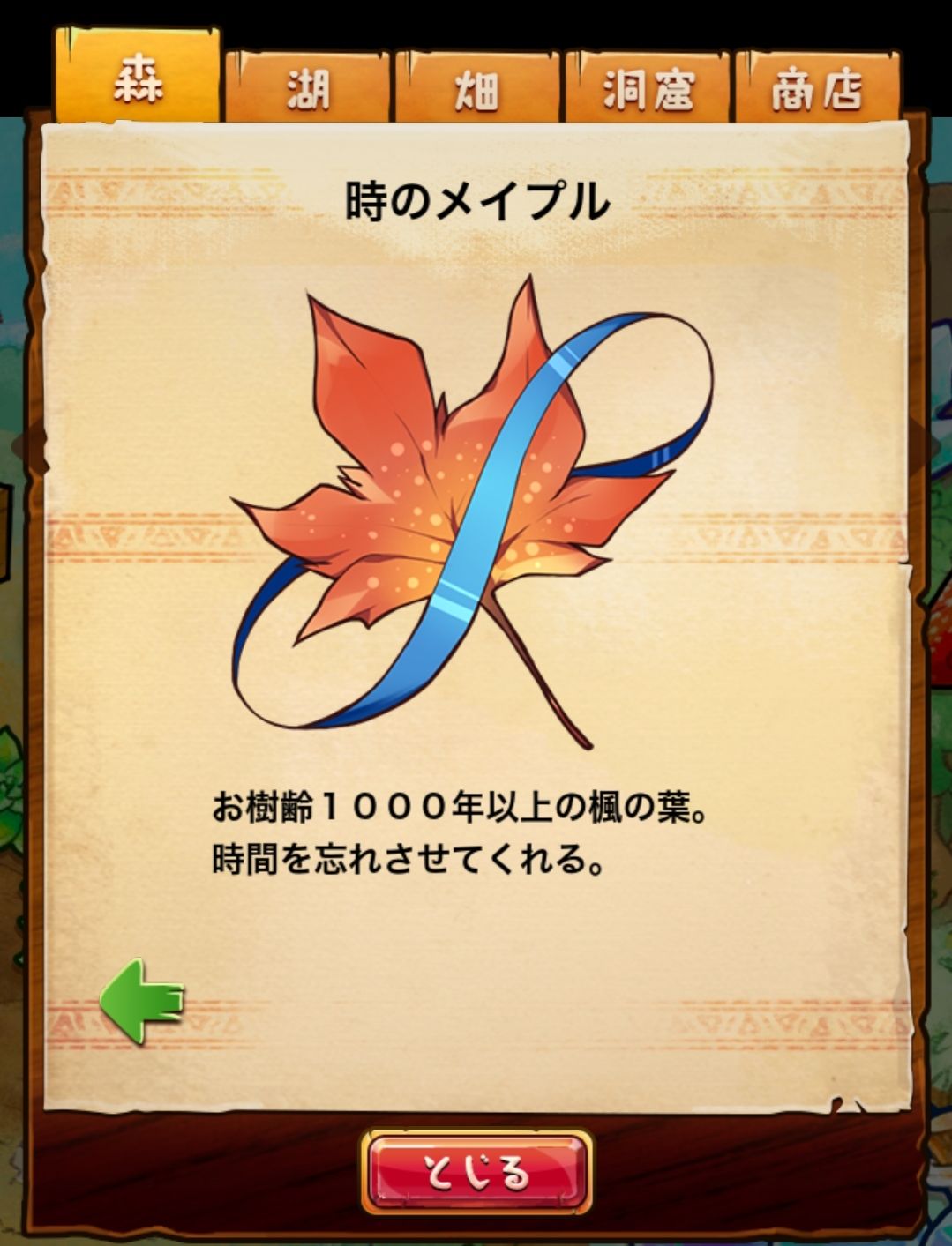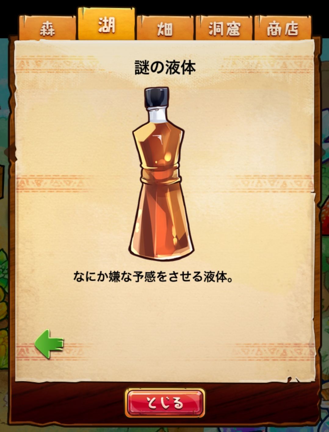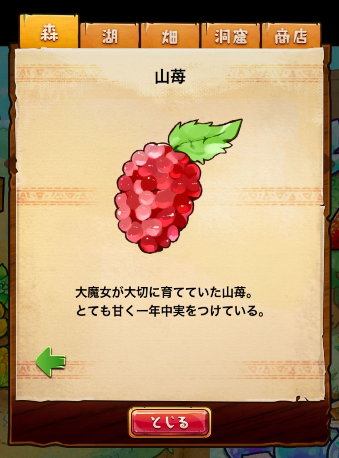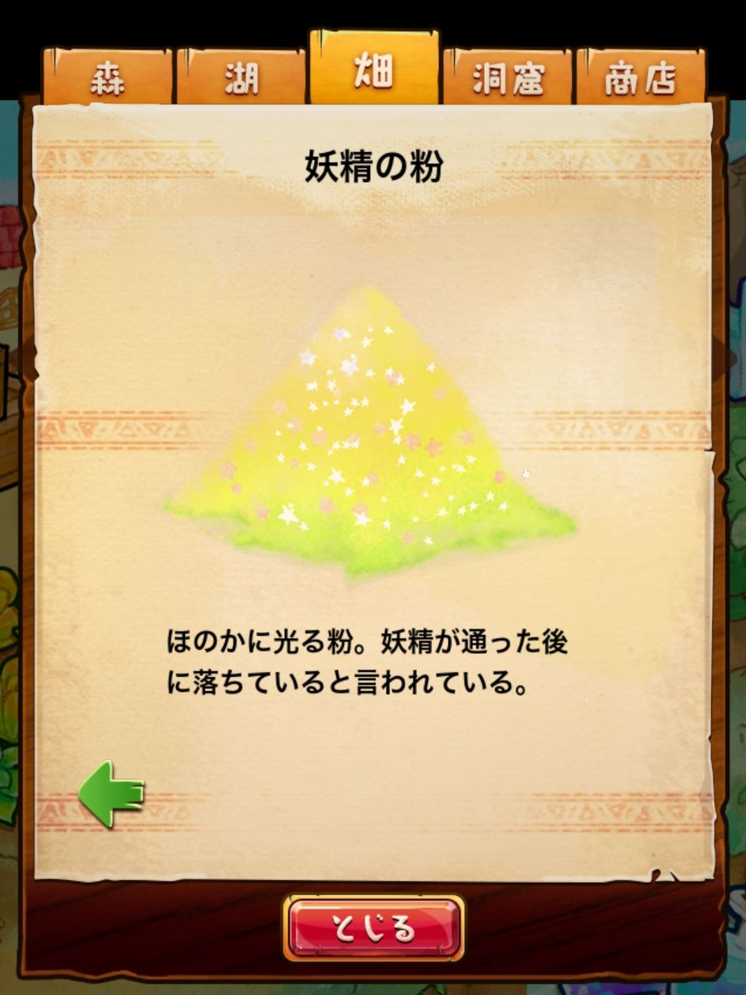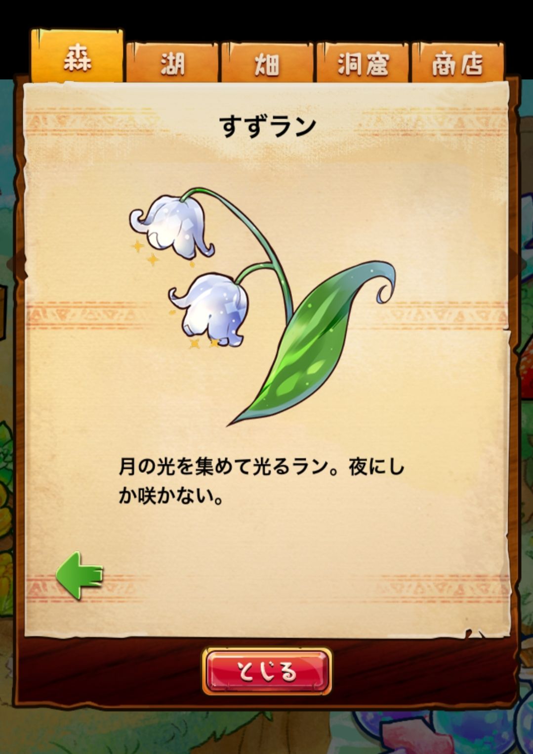 材料分五个地方: 森林,湖,田,洞窟和商店