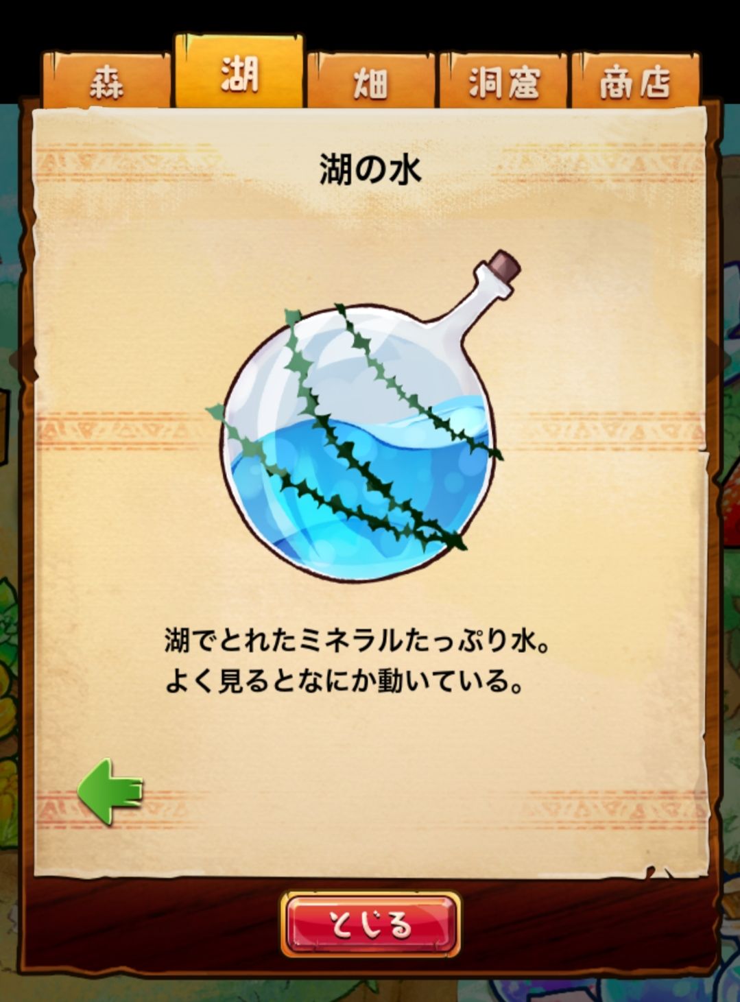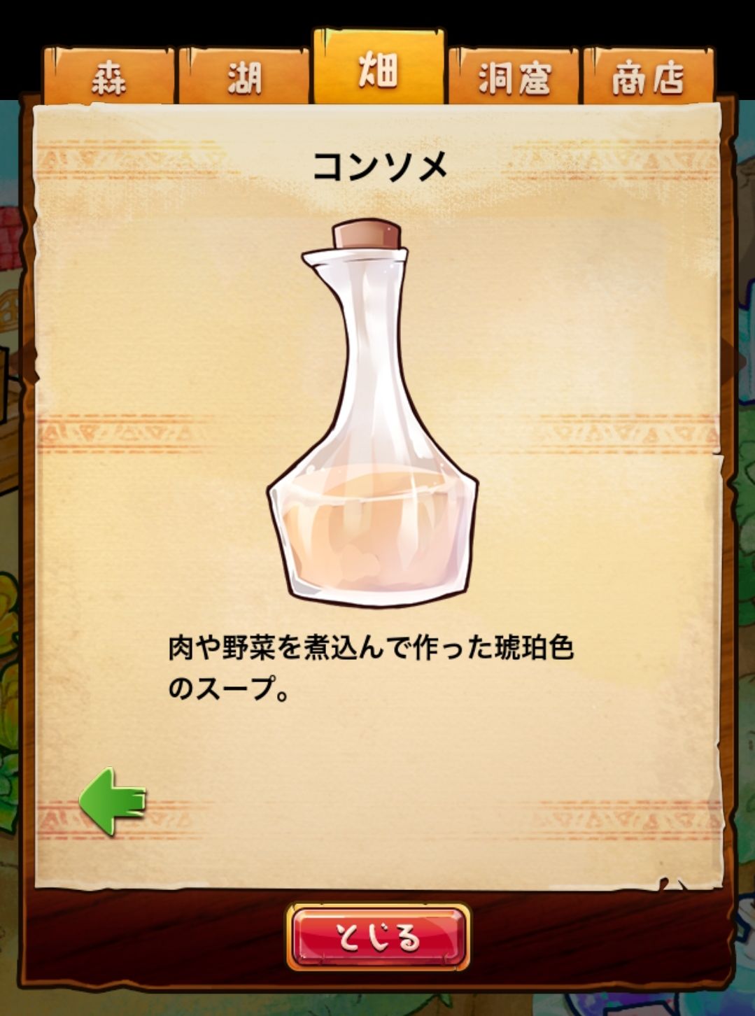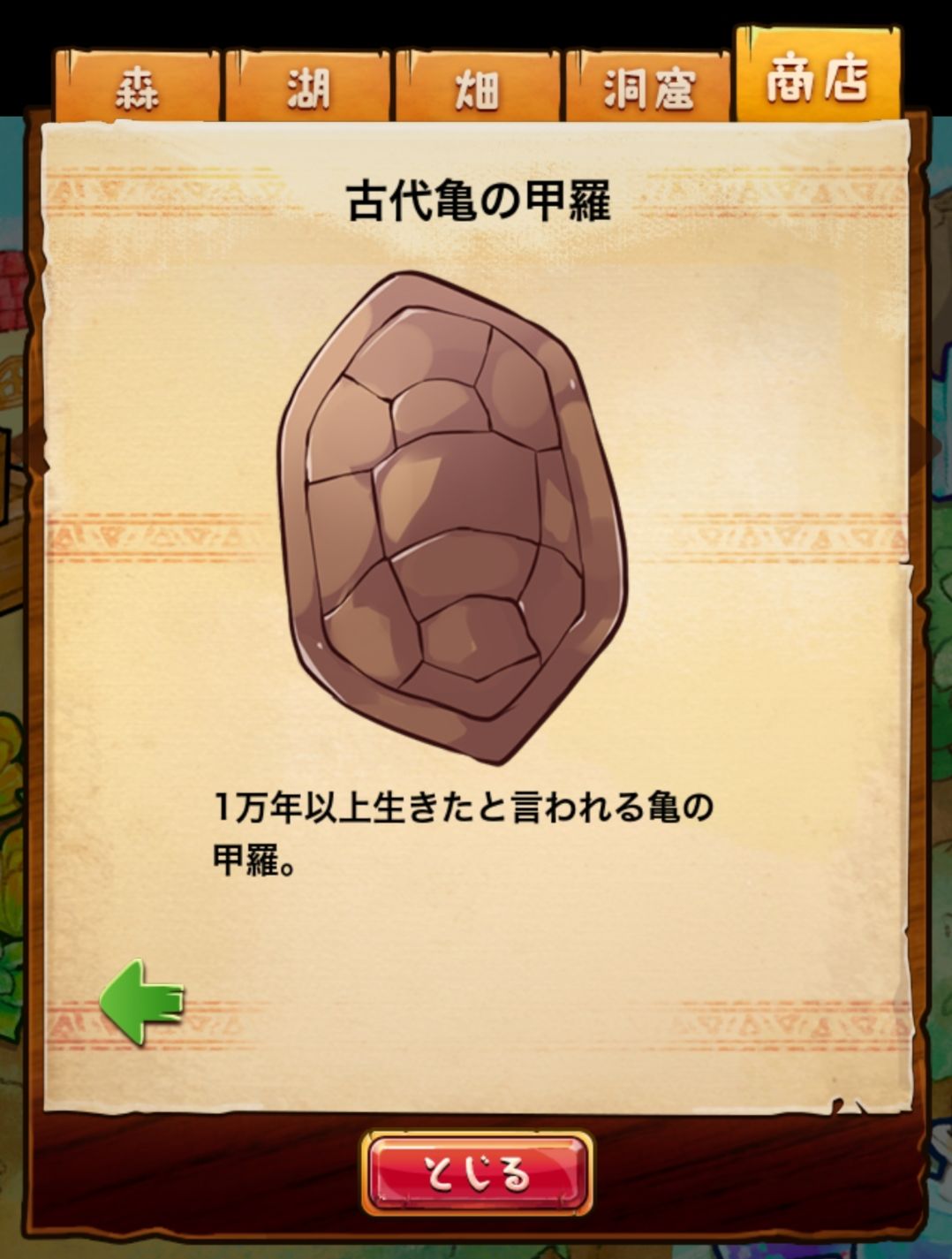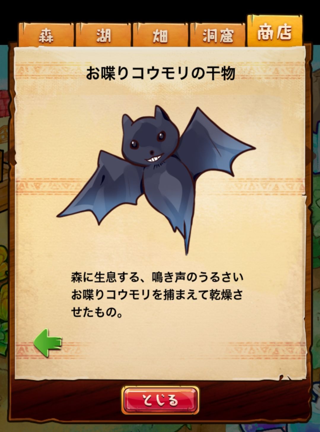 材料分五个地方: 森林,湖,田,洞窟和商店