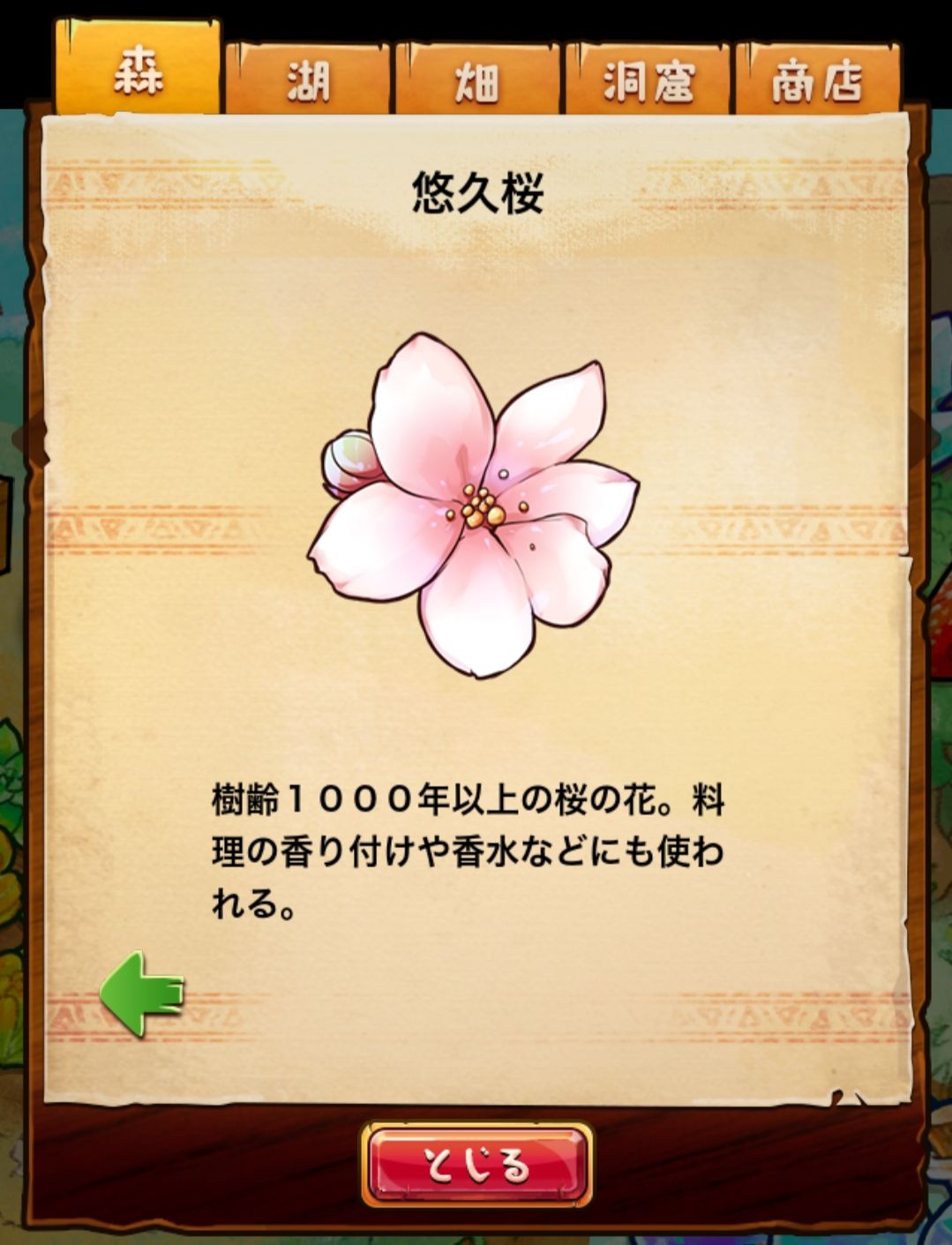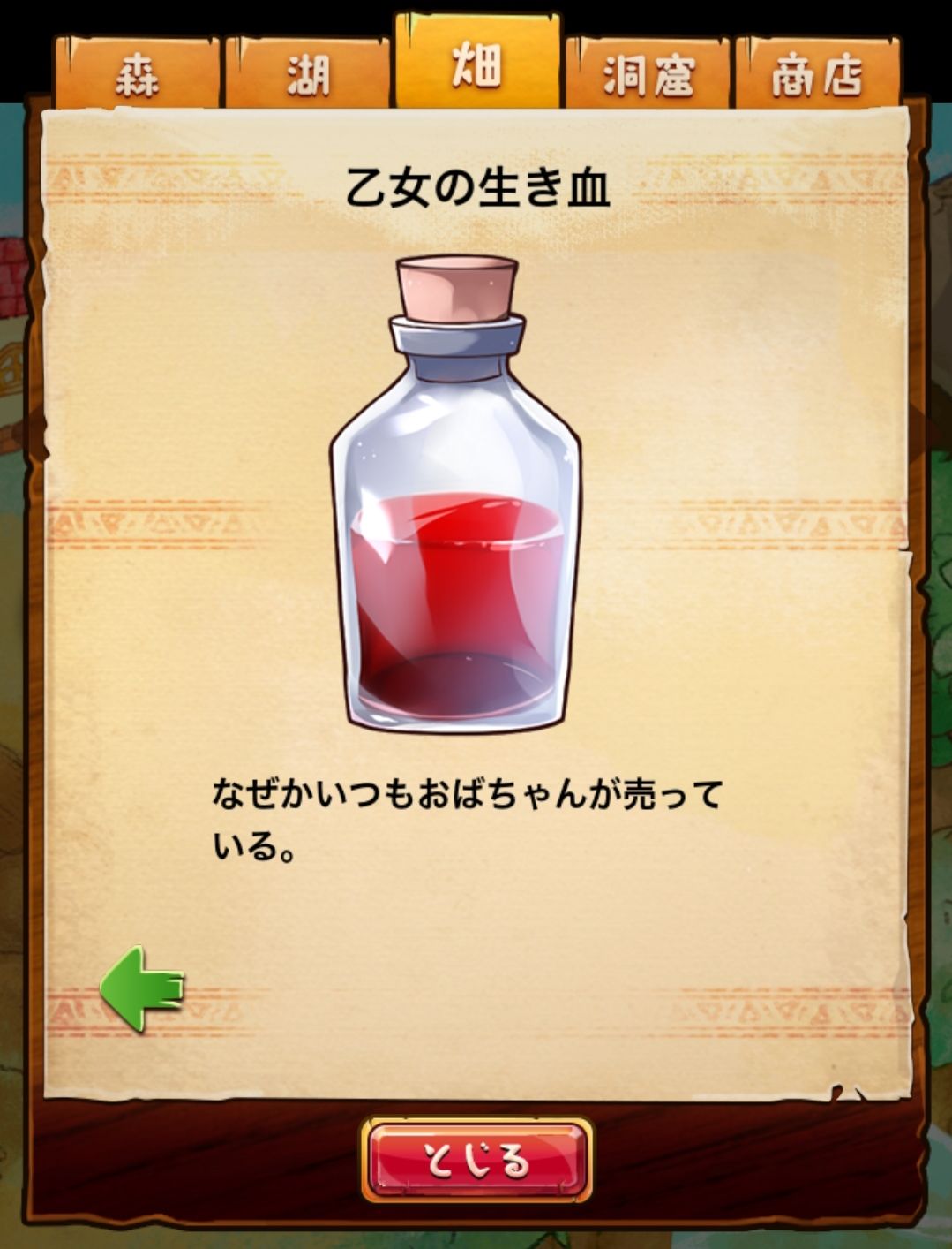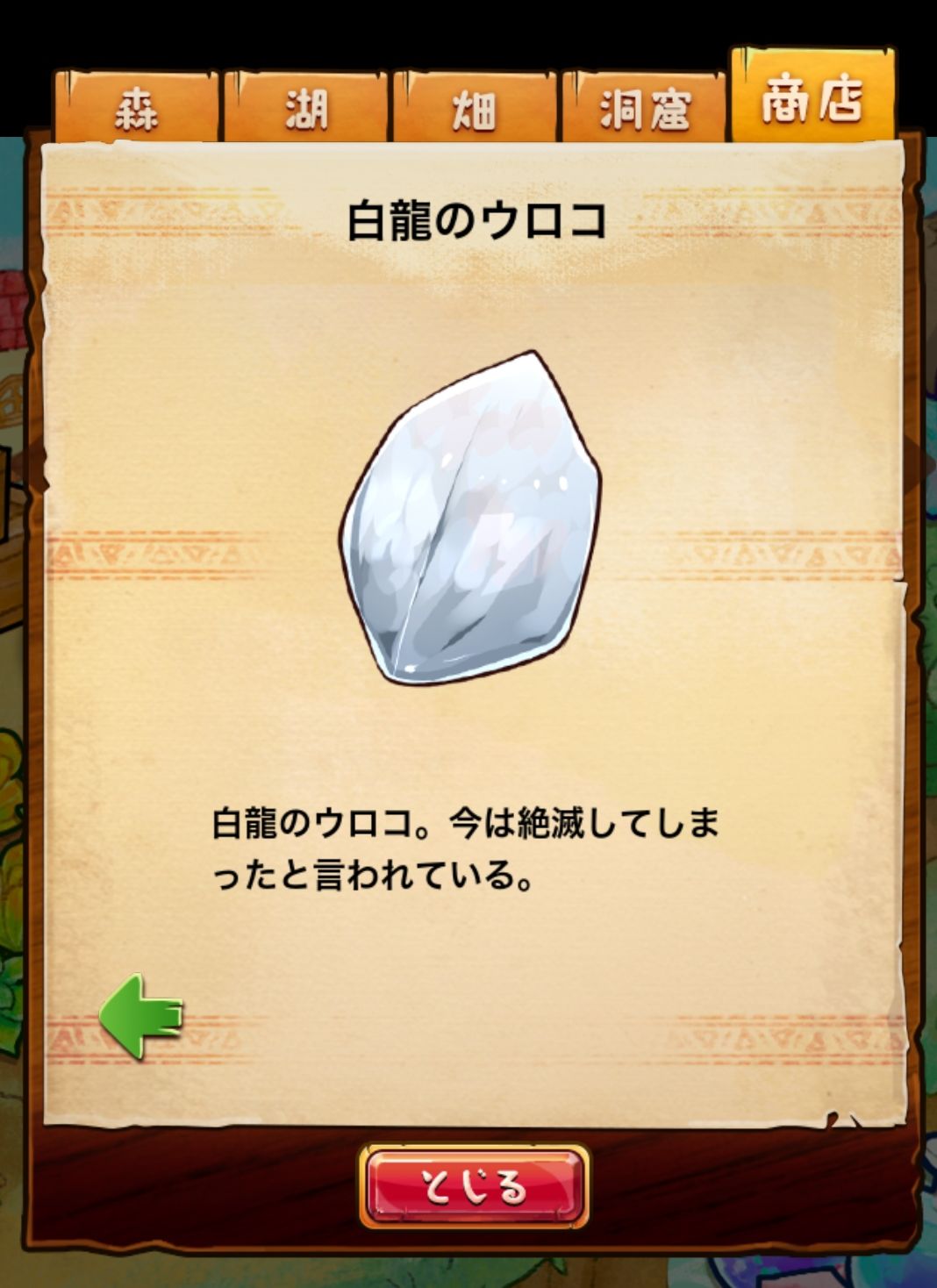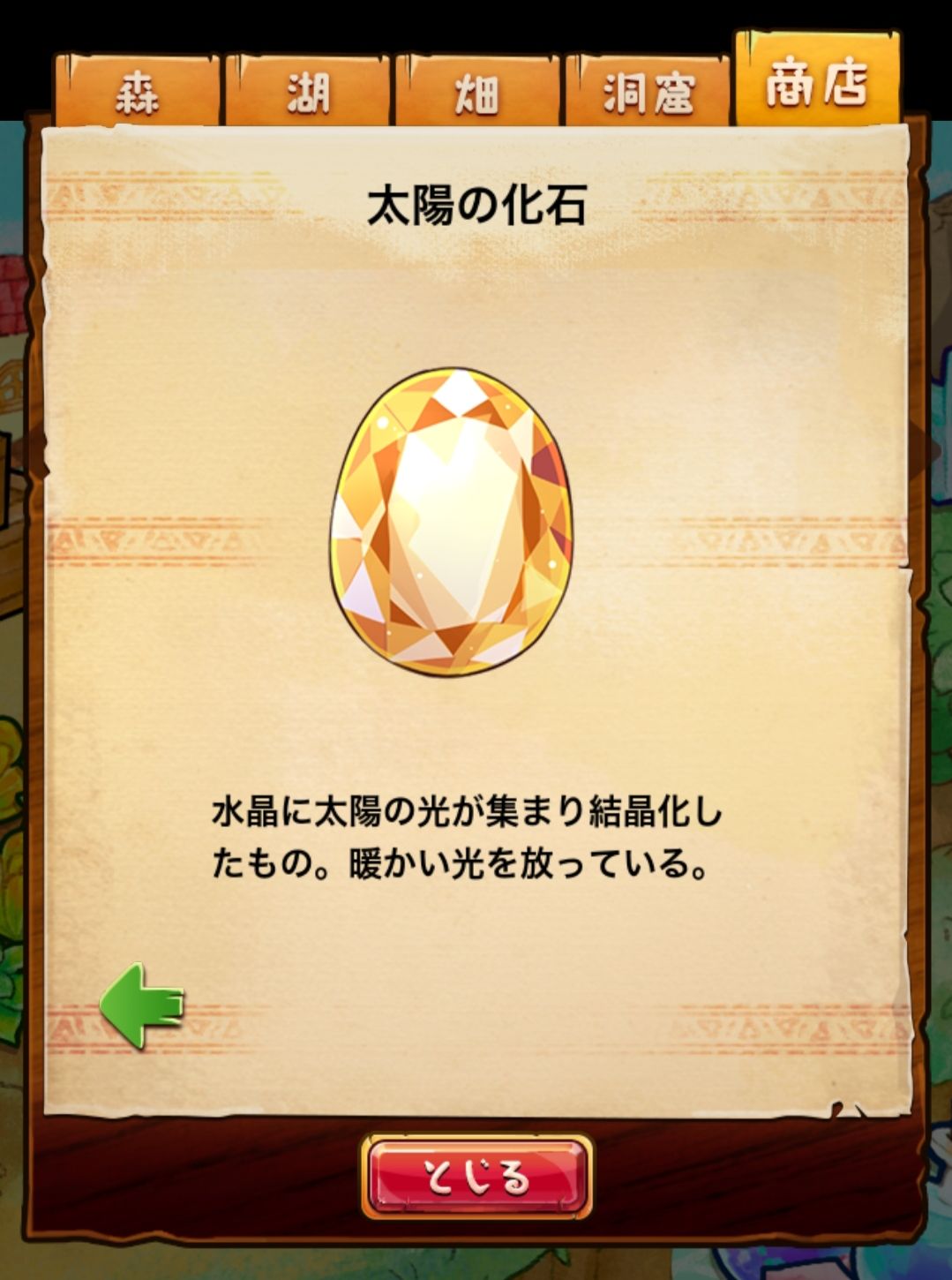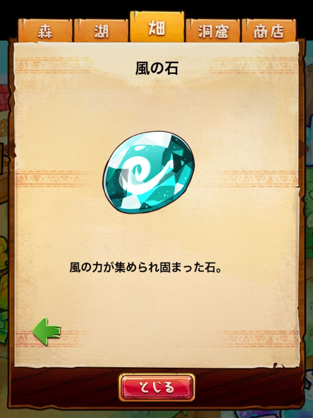 材料分五个地方: 森林,湖,田,洞窟和商店