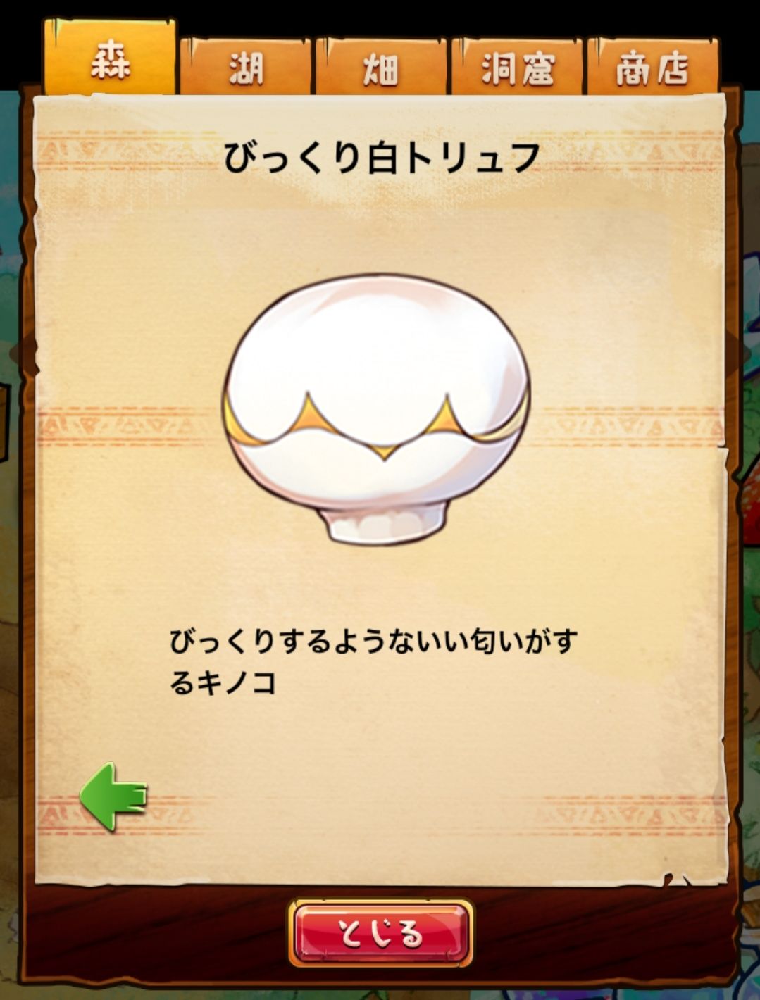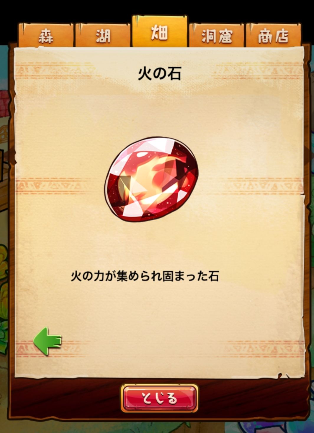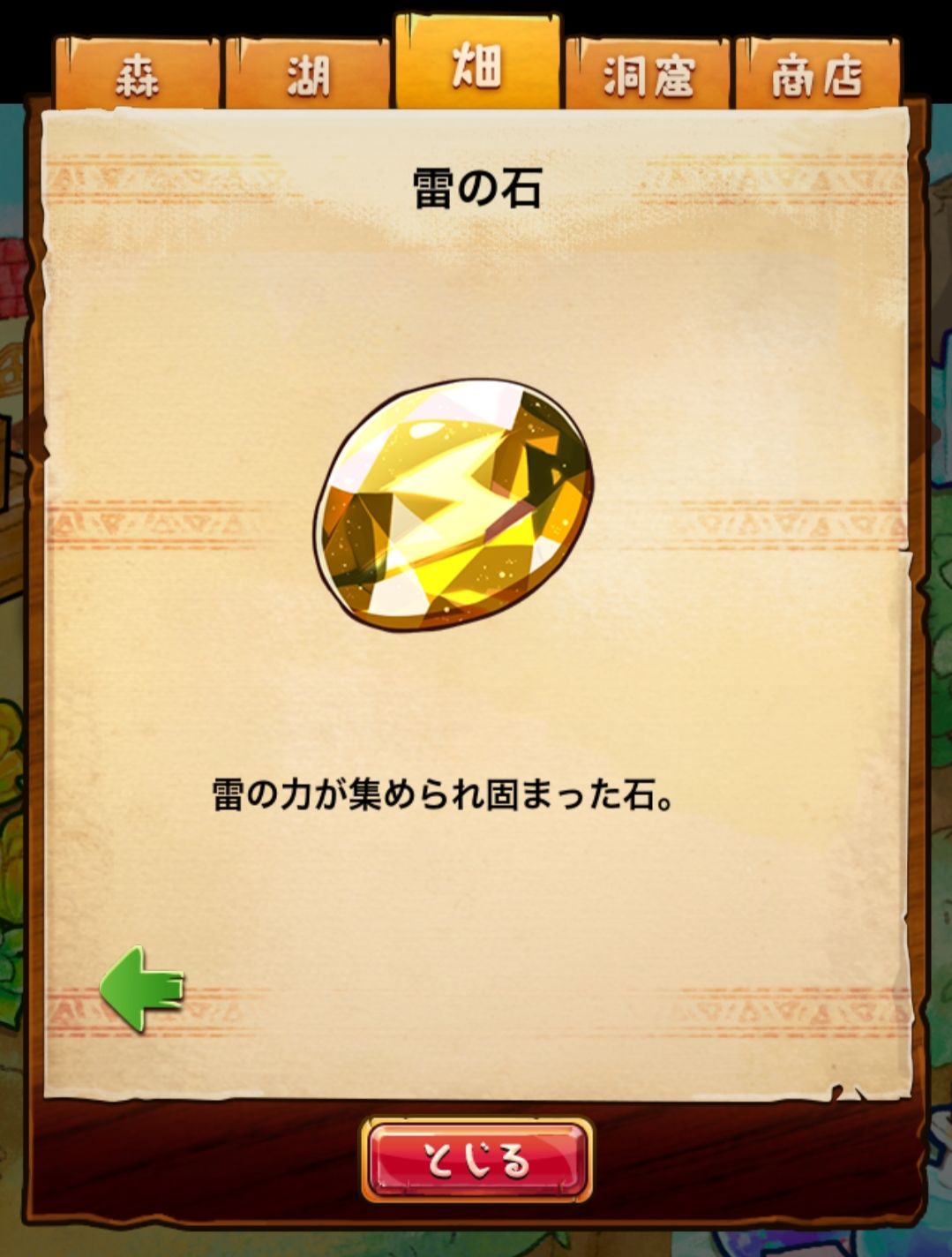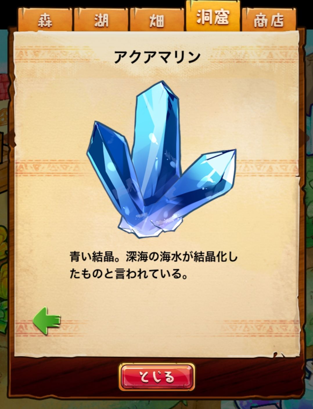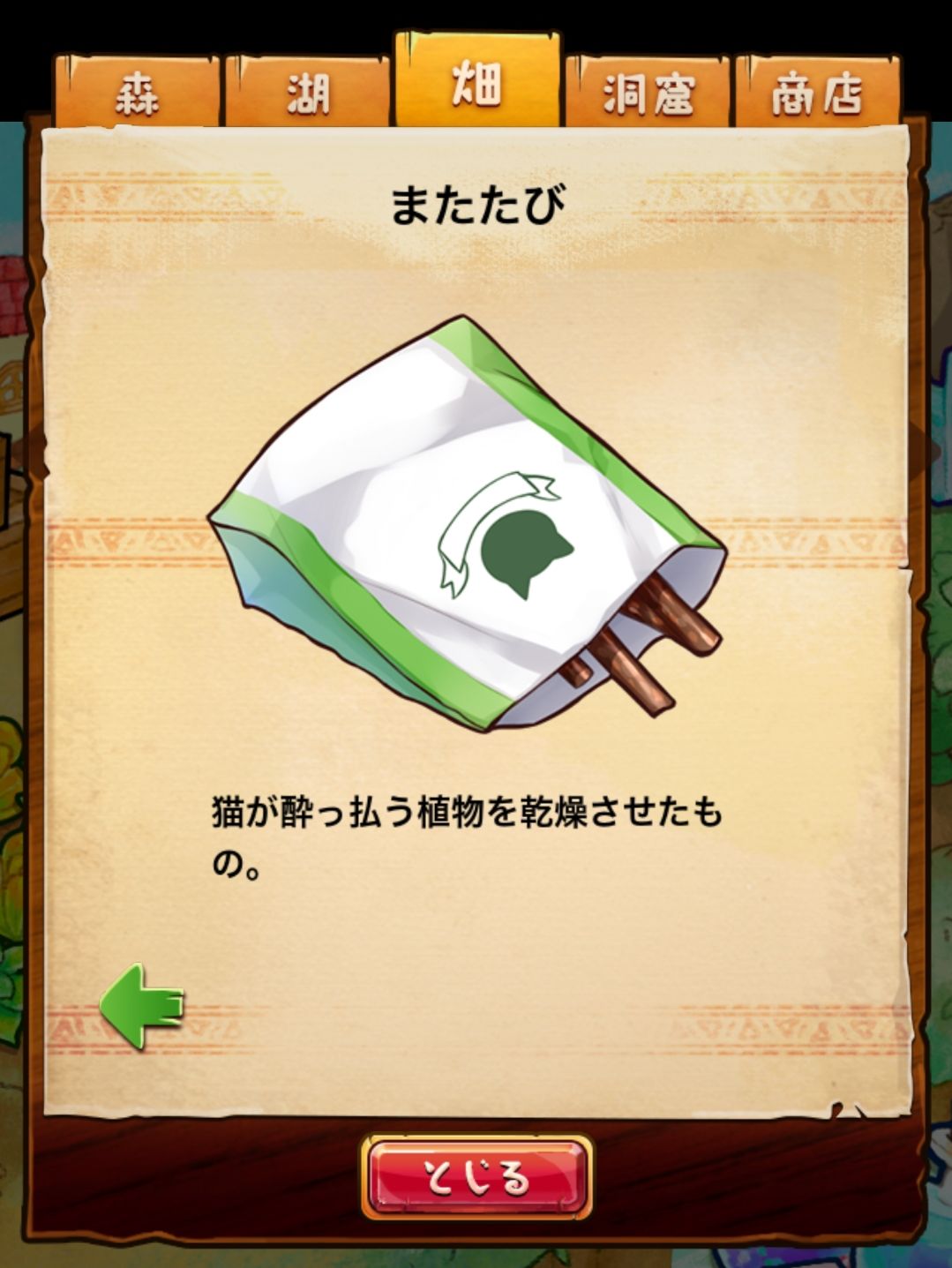 材料分五个地方: 森林,湖,田,洞窟和商店