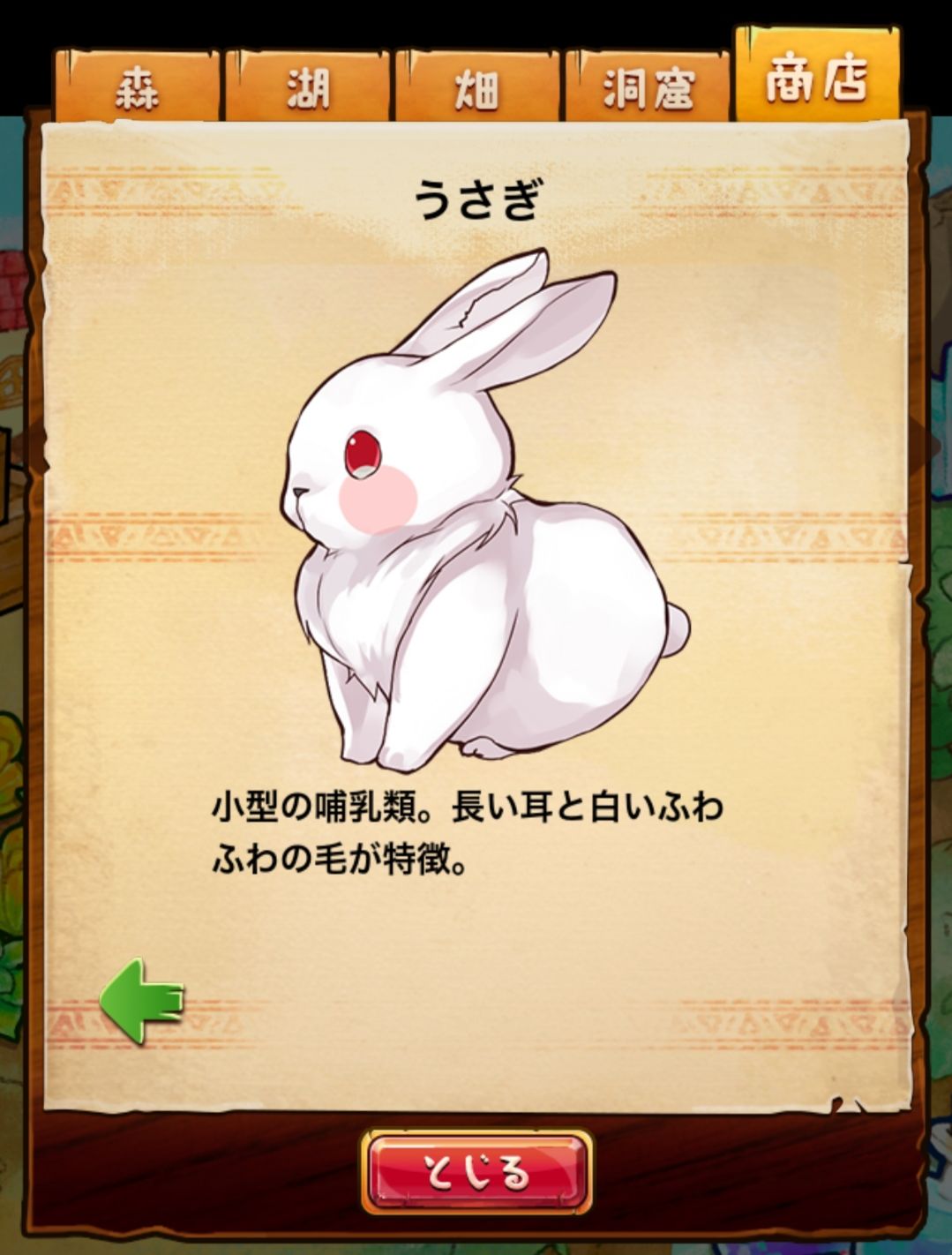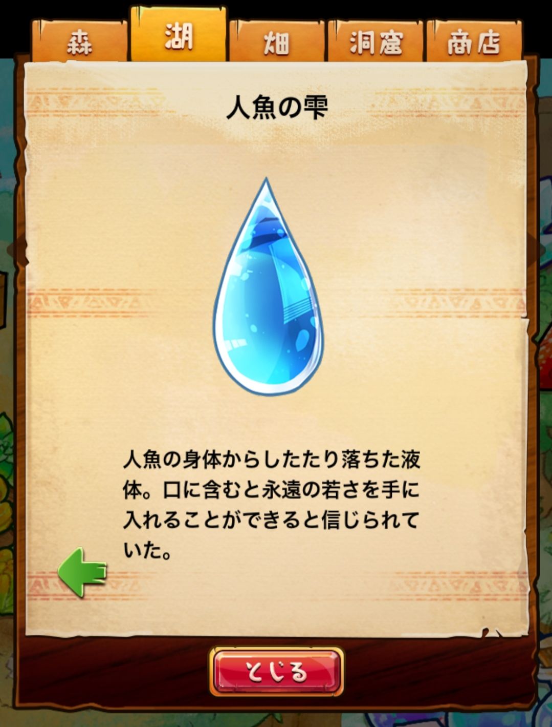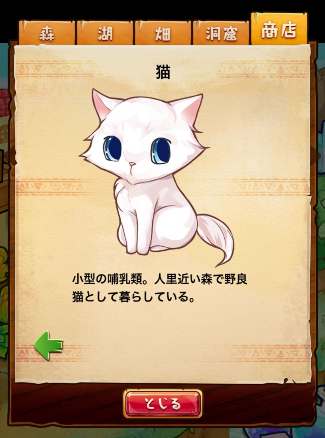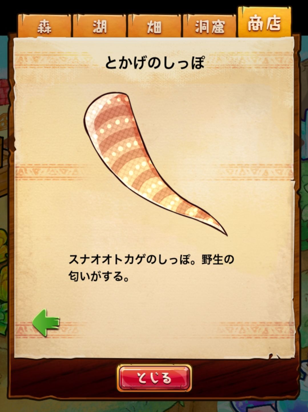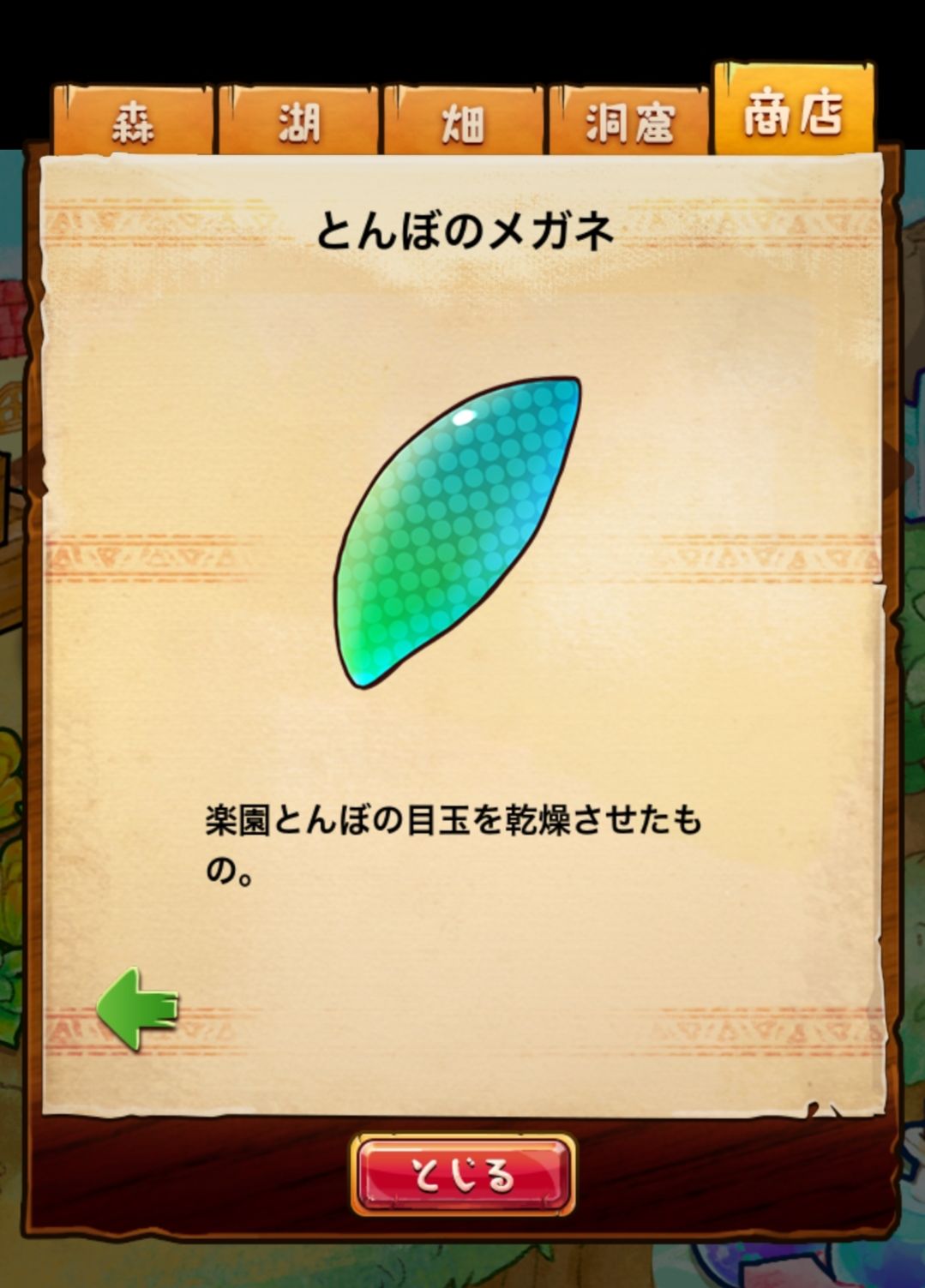 材料分五个地方: 森林,湖,田,洞窟和商店