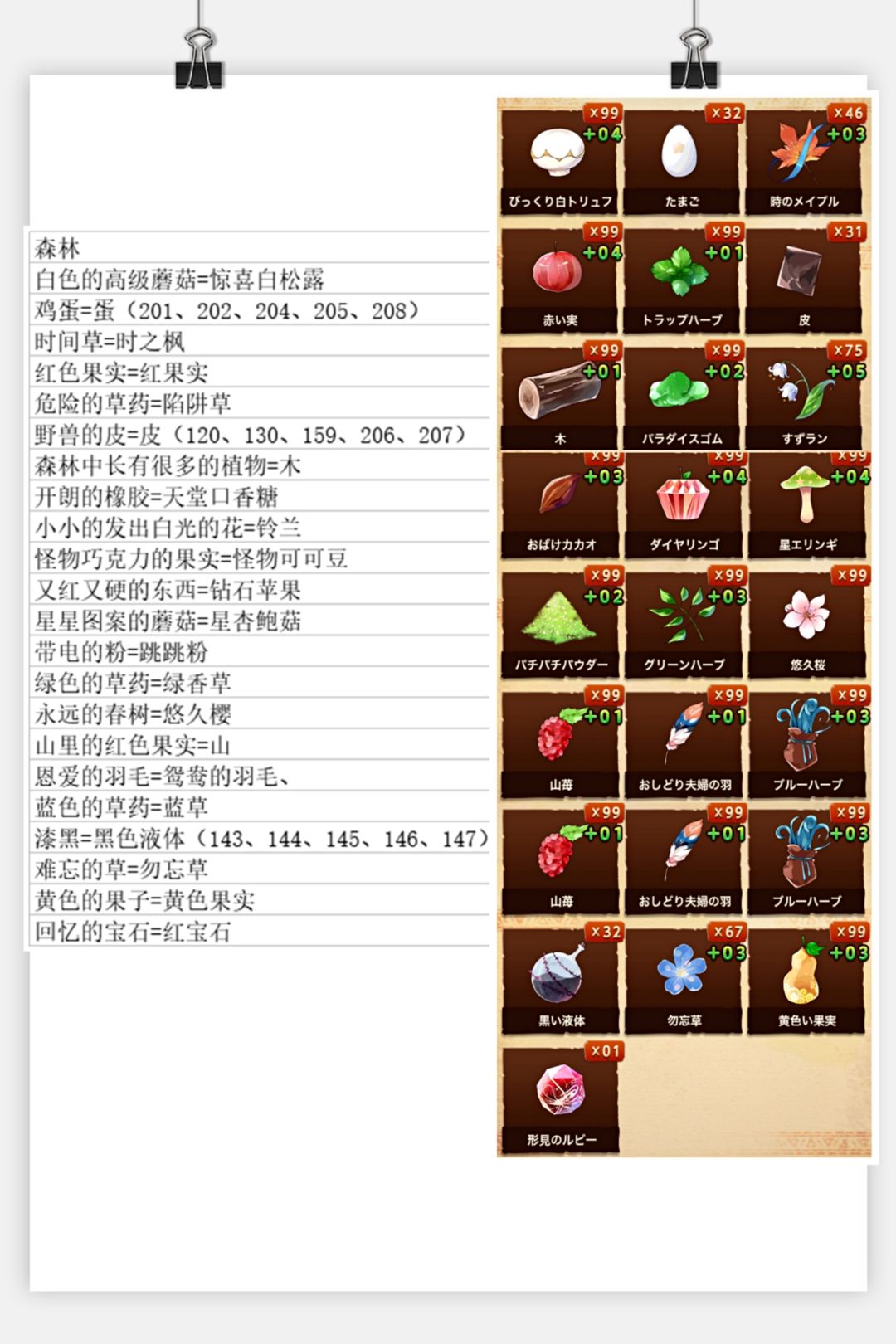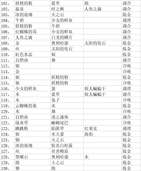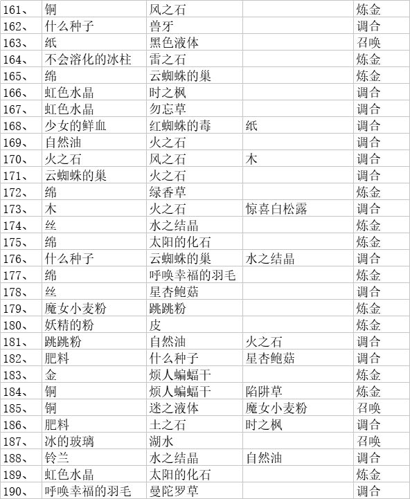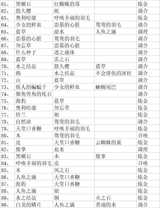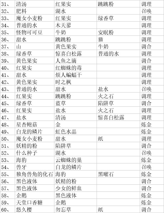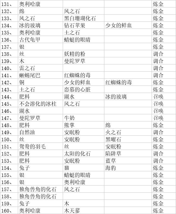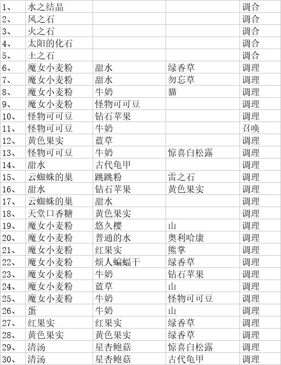 总结一下配方和材料对照(如果你们有幸找到了汉化的可以参考),没有找到的我会放日语的材料图片,可以参考图片找材料(不会日语哎所以只能做个中文的配方😂)有些材料是附属品,所以我会在那些材料之后标明配方序号