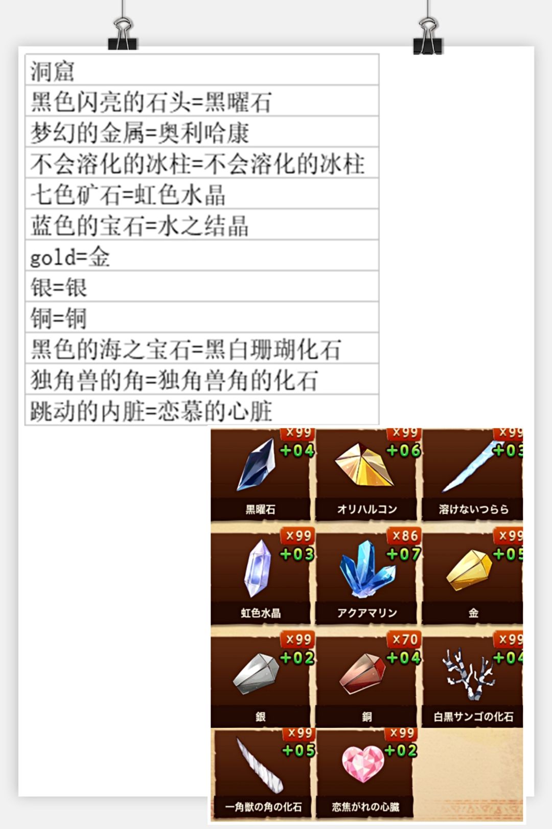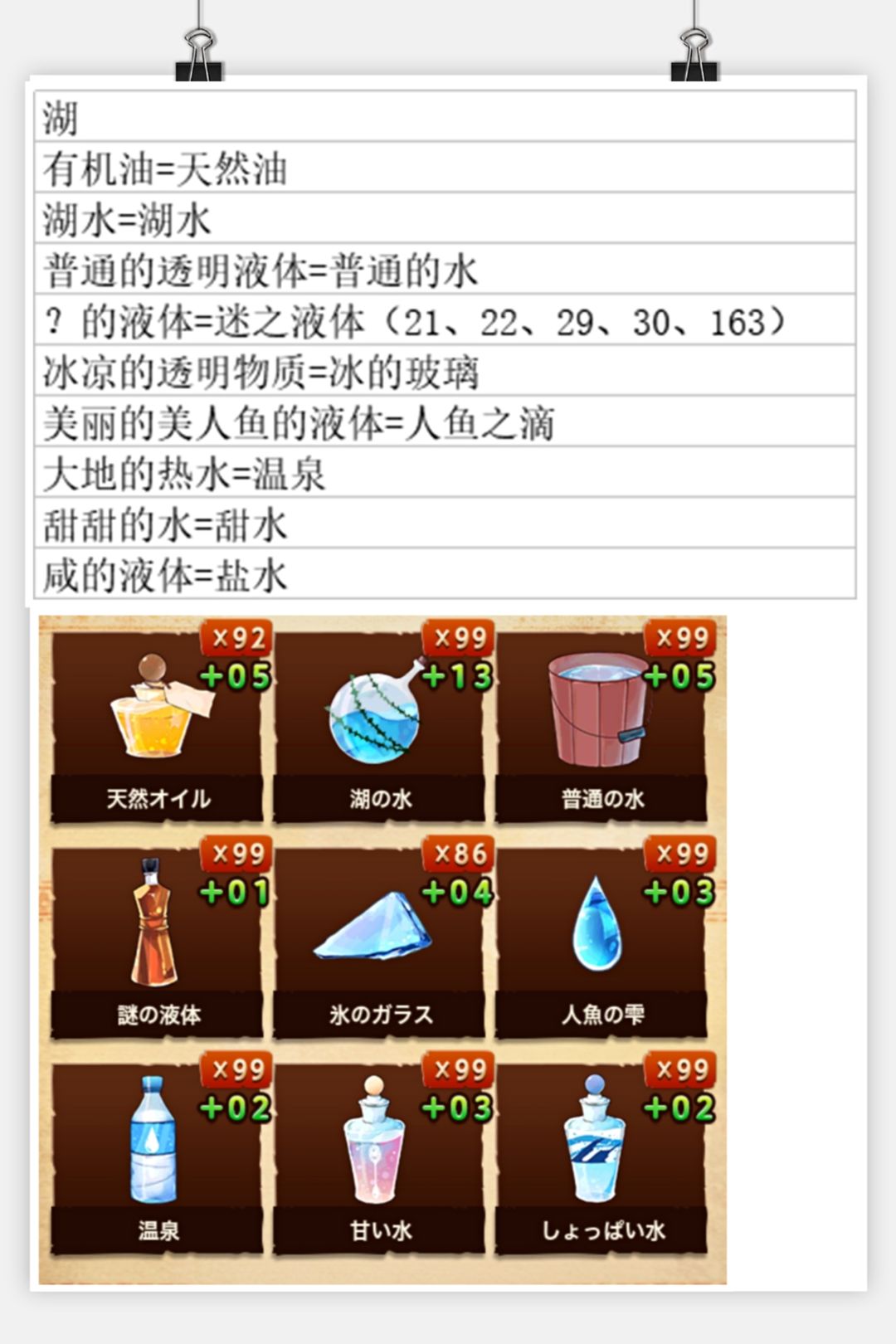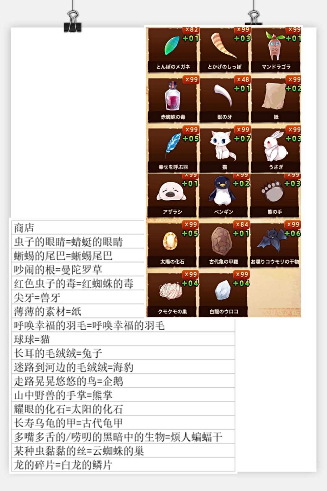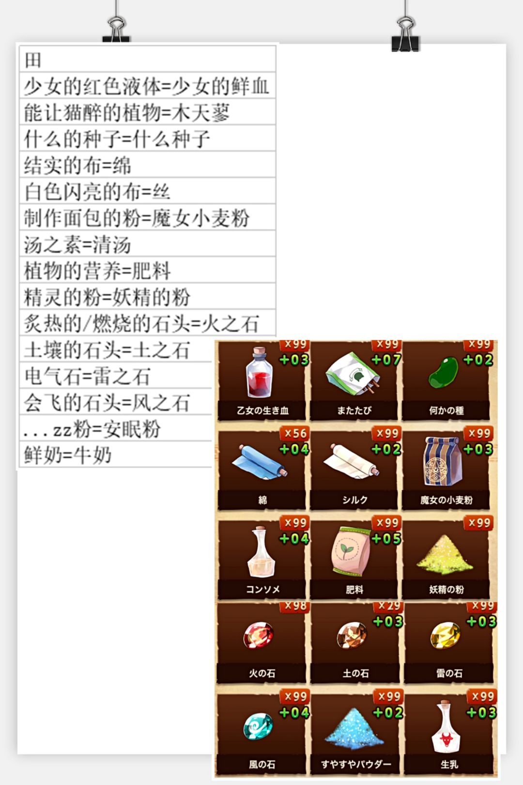 总结一下配方和材料对照(如果你们有幸找到了汉化的可以参考),没有找到的我会放日语的材料图片,可以参考图片找材料(不会日语哎所以只能做个中文的配方😂)有些材料是附属品,所以我会在那些材料之后标明配方序号