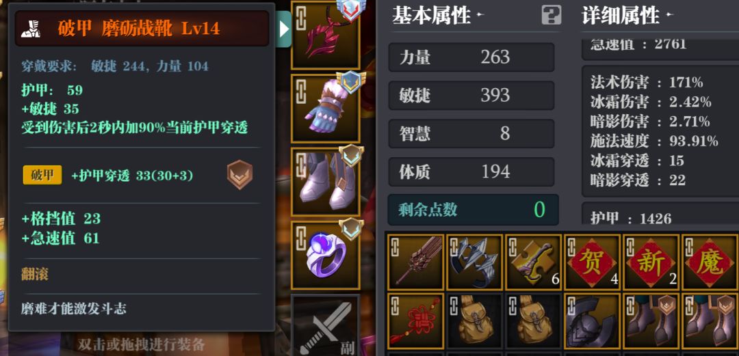 装备属性有效(面板)包括护甲(重要!) +的属性点(重要!)词缀(非常重要!)词条(一般重要)综上,如何选择装备就很明显了