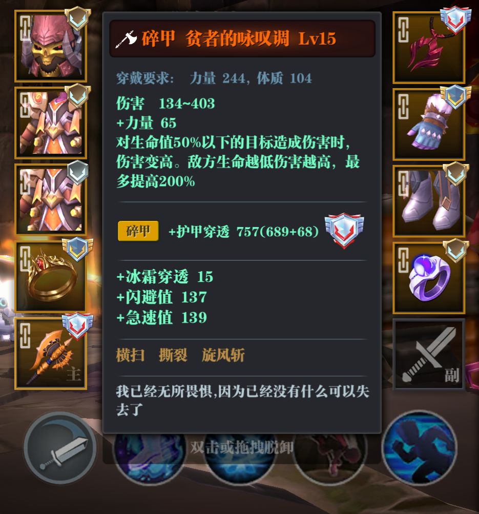没有留+体力或者力量的急速项链,这个时候只能悲剧了