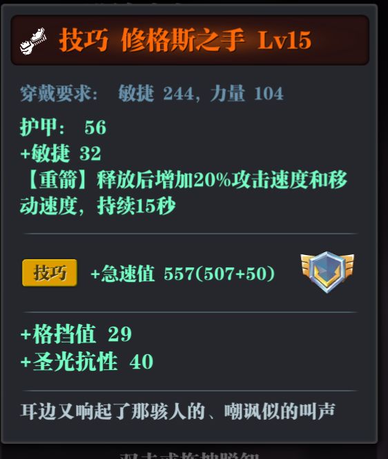要急速的目的就是增加攻速,当然攻速有档,有阈值,不明白的小伙伴们在论坛搜一下,攻速够档了就不用堆了,你问我什么档最好?那当然是越高越好了!但是因为没有法盘和天赋和装备效果支持,绝大部分玩家都是不可能达到很高的, 所以尽力堆到2档,67%攻速