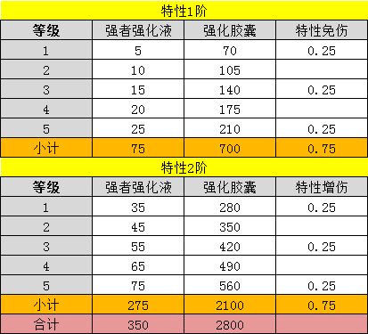 ④.普通特性累计等级达到设定值后,可对下一阶段的特性能力进行激活。