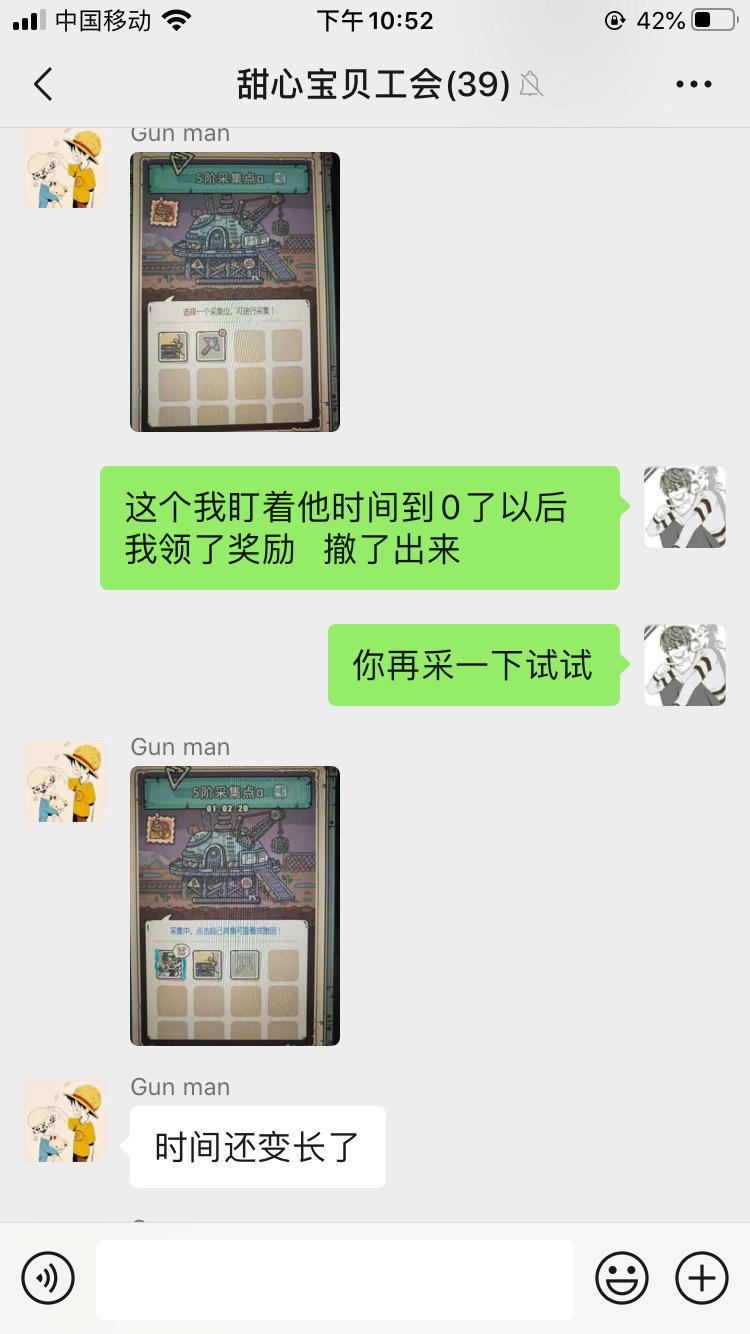 我们挖矿的时候,我这等着时间归零,显示挖完了,出来领了奖励,换下一个矿。但是公会另一个也在挖这个矿的人说他显示没挖完,而且越挖时间越长。